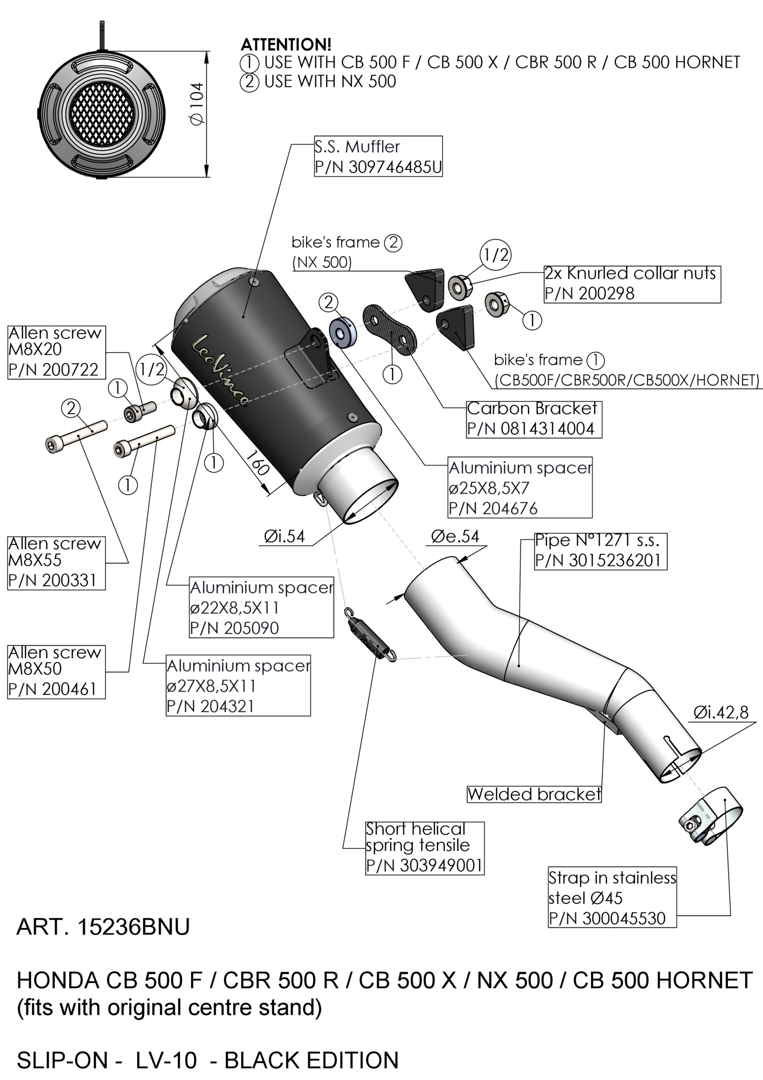 14314E - Exhaust Muffler LeoVince LV ONE EVO SS HONDA CB 500 F/X (19-20)Special Price €305.25 Regular Price €407.00 -25% -