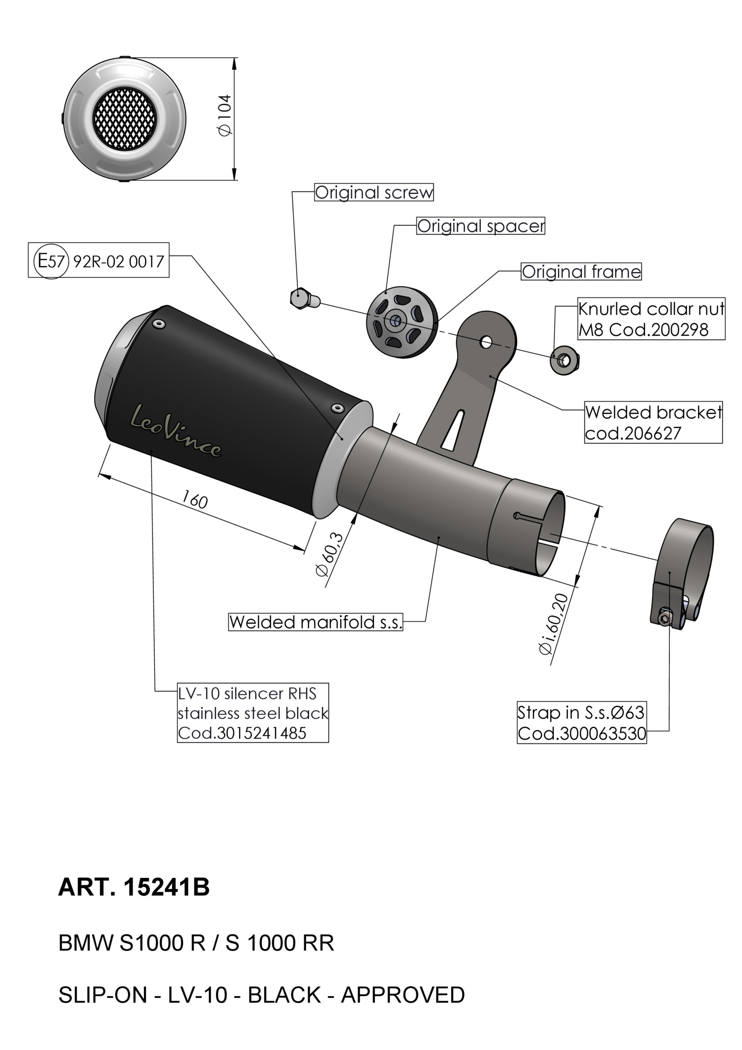 15241B - Exhaust muffler LeoVince LV-10 Black SS BMW S 1000 R (21-23)