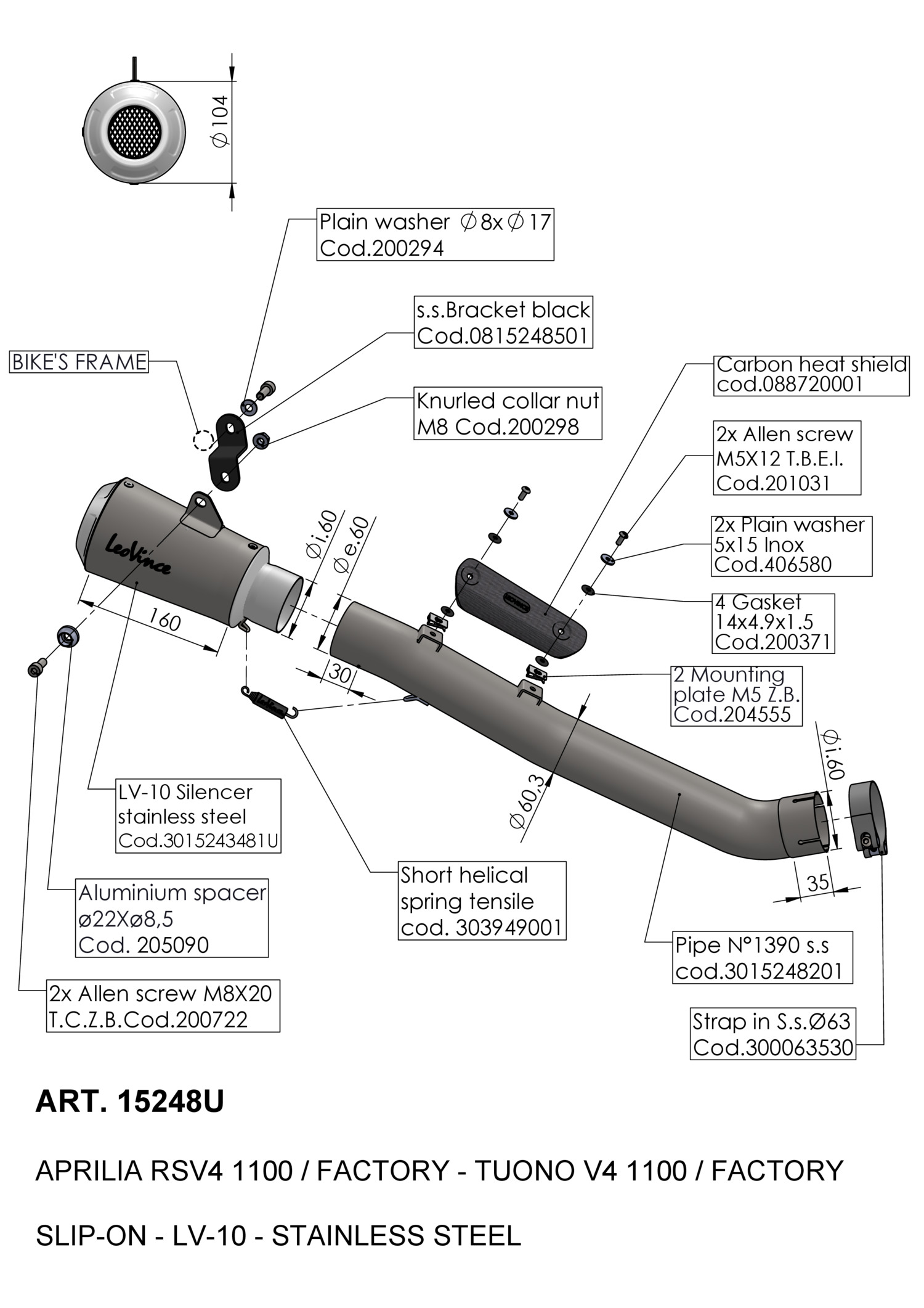 15248U - Exhaust muffler LeoVince LV-10 SS APRILIA RSV4 1100/FACTORY (21-23)