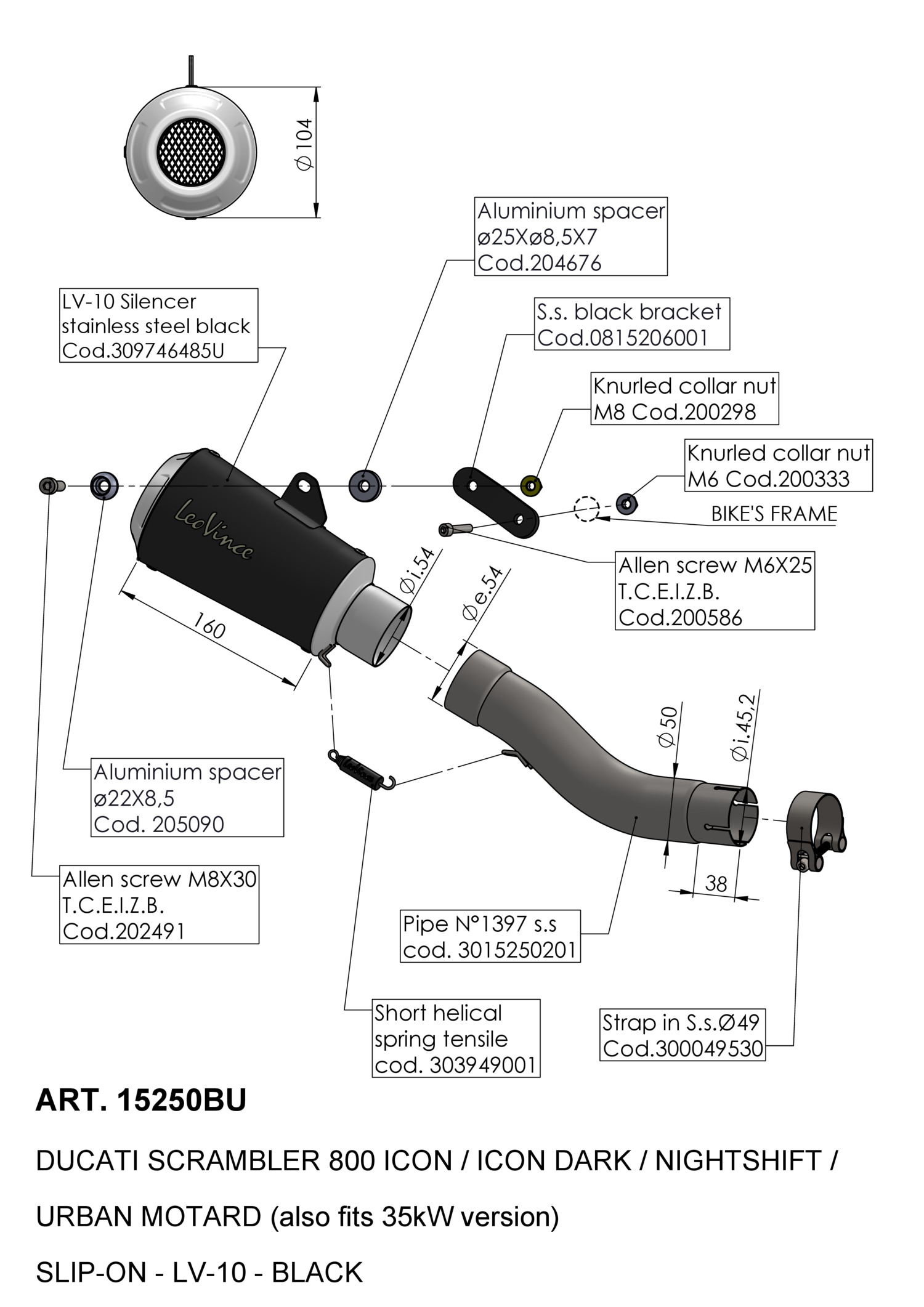 15250BU - Exhaust muffler LeoVince LV-10 BL DUCATI SCRAMBLER 800 (21-22)