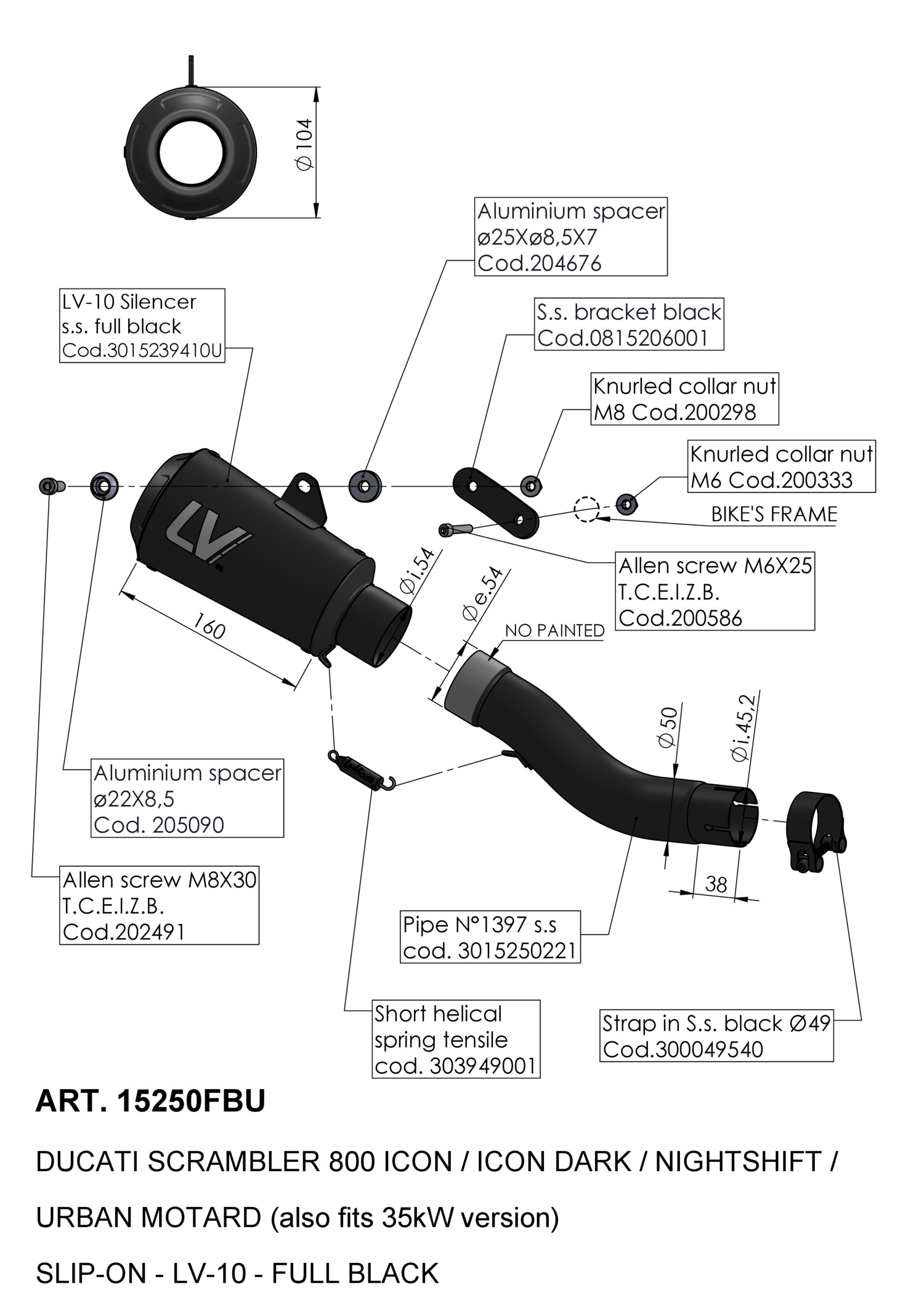 15254BU - Exhaust muffler LeoVince LV-10 BLACK DUCATI SCRAMBLER 800 (21-22)Special Price $238.88 Regular Price $318.51 -25% -