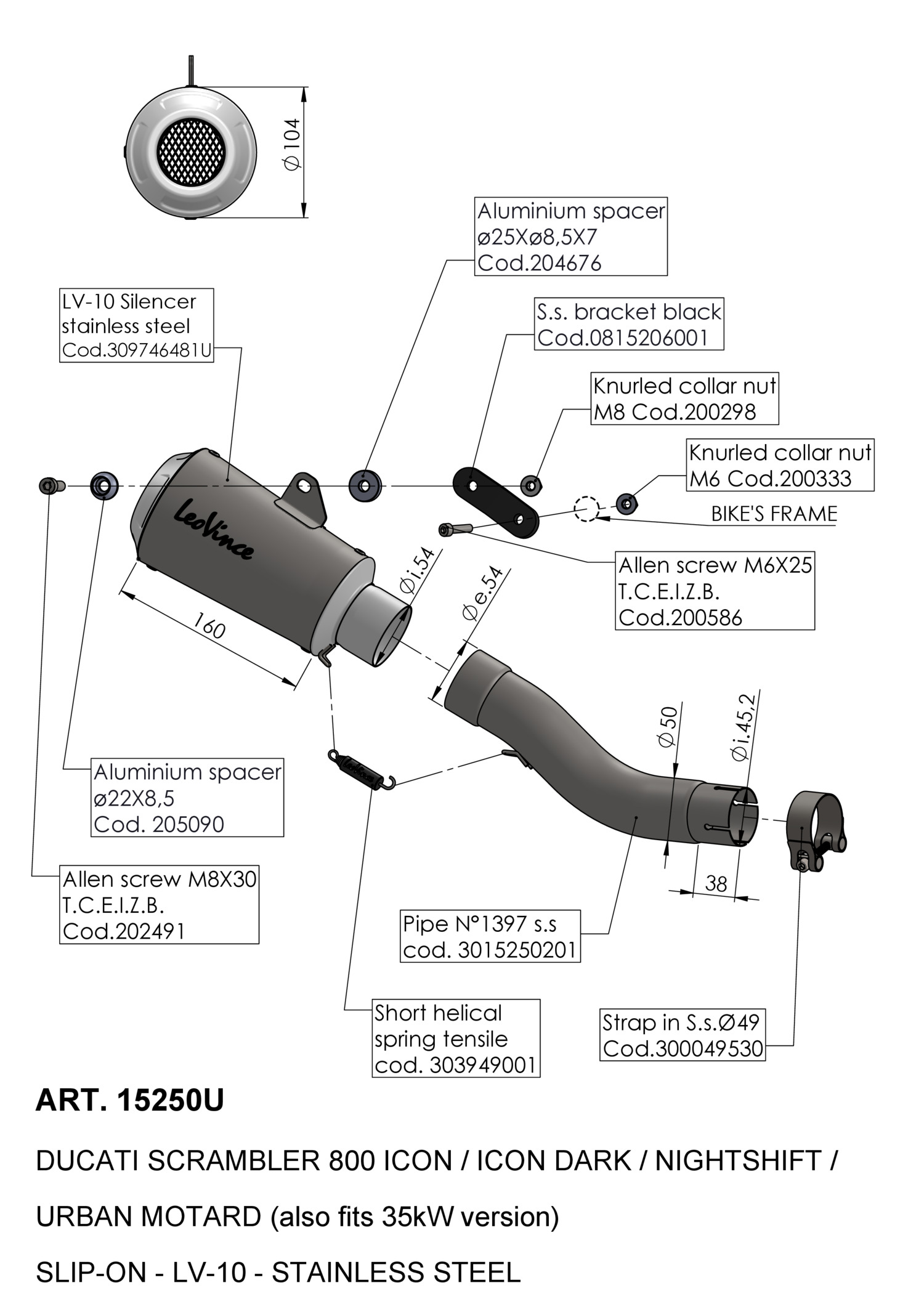 15250U - Exhaust muffler LeoVince LV-10 Inox DUCATI SCRAMBLER 800 (21-22)