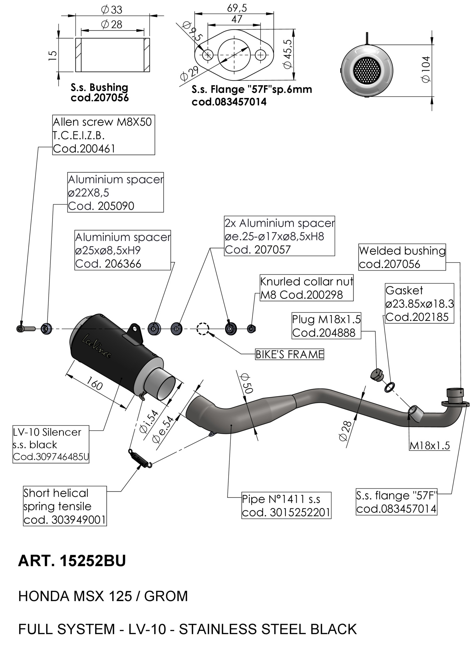 15253 - Exhaust LeoVince LV-10 Stainless steel HONDA MSX 125 / GROM (22-23)Special Price €389.25 Regular Price €519.00 -25%