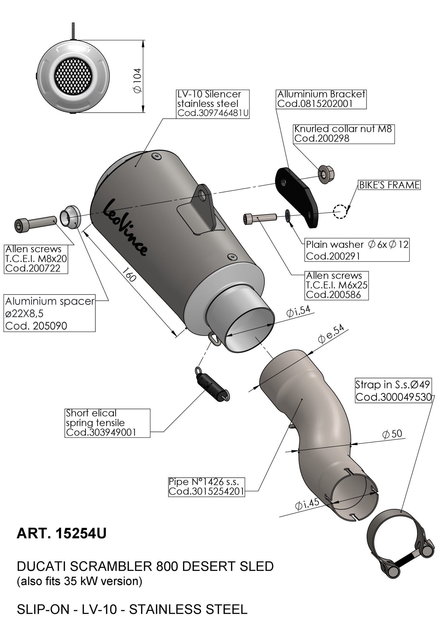 15250U - Exhaust muffler LeoVince LV-10 Inox DUCATI SCRAMBLER 800 (21-22)Special Price €194.25 Regular Price €259.00 -25% -