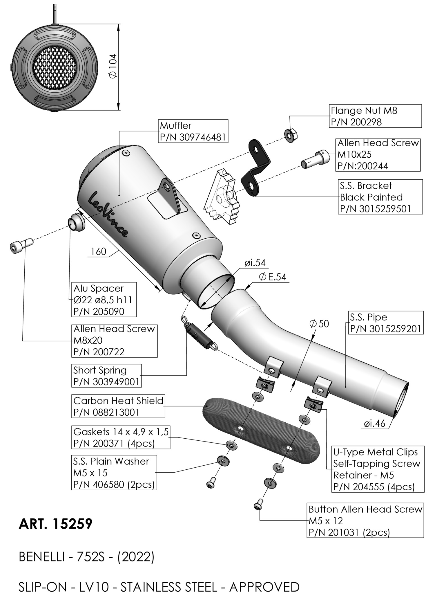 The rear stainless steel mesh on the outlet, also made of AISI 304 stainless steel, enhances the racing spirit with which we conceived the LV-10.