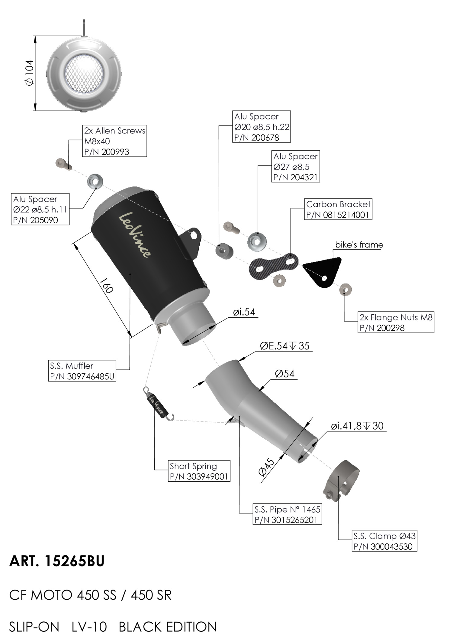 15265FBU - Exhaust muffler LeoVince LV-10 FULL BLACK CF MOTO 450 SS / SR 2023 >Special Price $256.00 Regular Price $341.34 -25% -