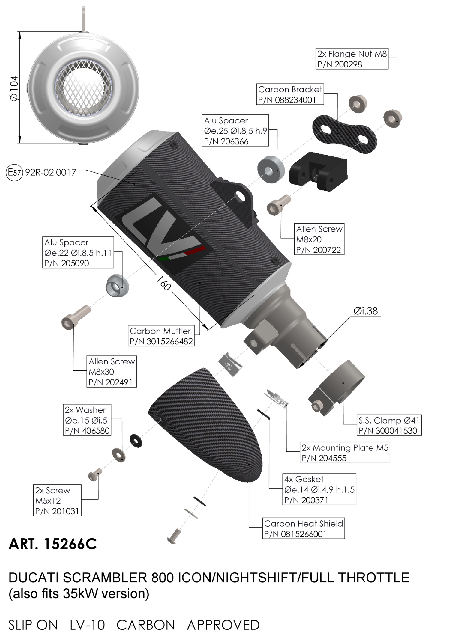 15266C - Exhaust muffler LeoVince LV-10 CARBON DUCATI SCRAMBLER 800 (23-24)