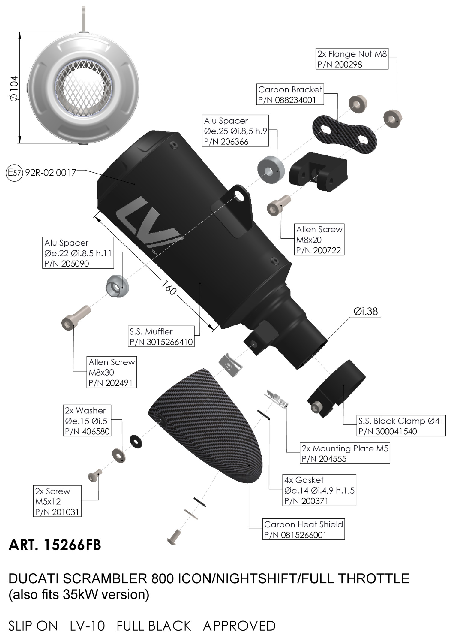 15266C - Exhaust muffler LeoVince LV-10 CARBON DUCATI SCRAMBLER 800 (23-24)Special Price €267.00 Regular Price €356.00 -25%