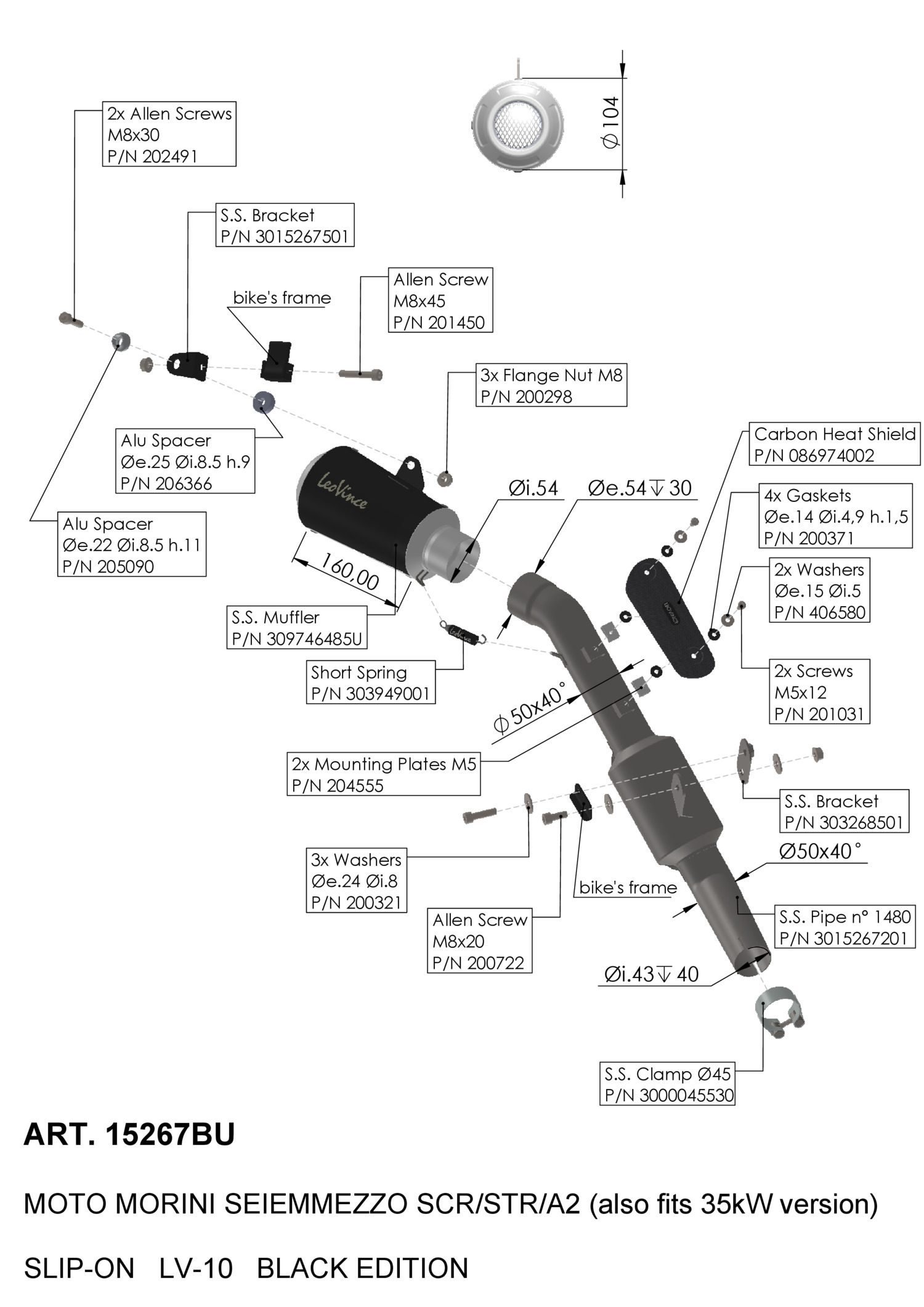 The LV-10 Black Edition end cap is made of AISI 304 stainless steel with a shot-blasted finish. Strong and tough, we have chosen it for its optimal resistance to the nitric acid that is present in the exhaust gases, to always keep your bike in perfect shape.