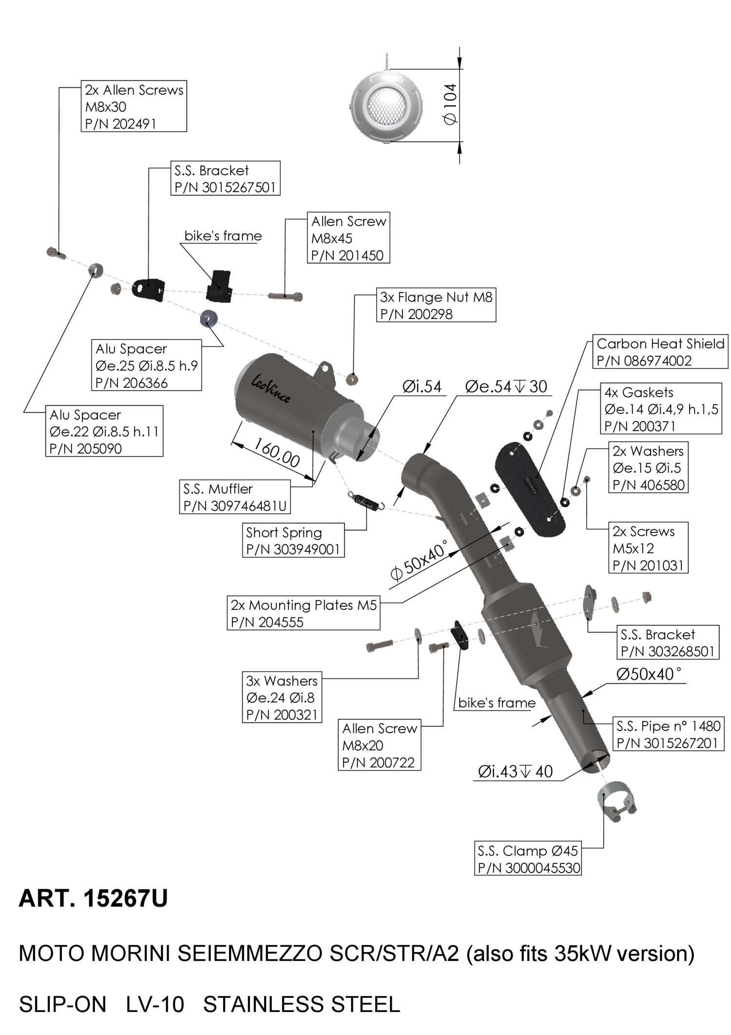 15267U - Exhaust muffler LeoVince LV-10 Inox MOTO MORINI SEIEMMEZZO (23-24)