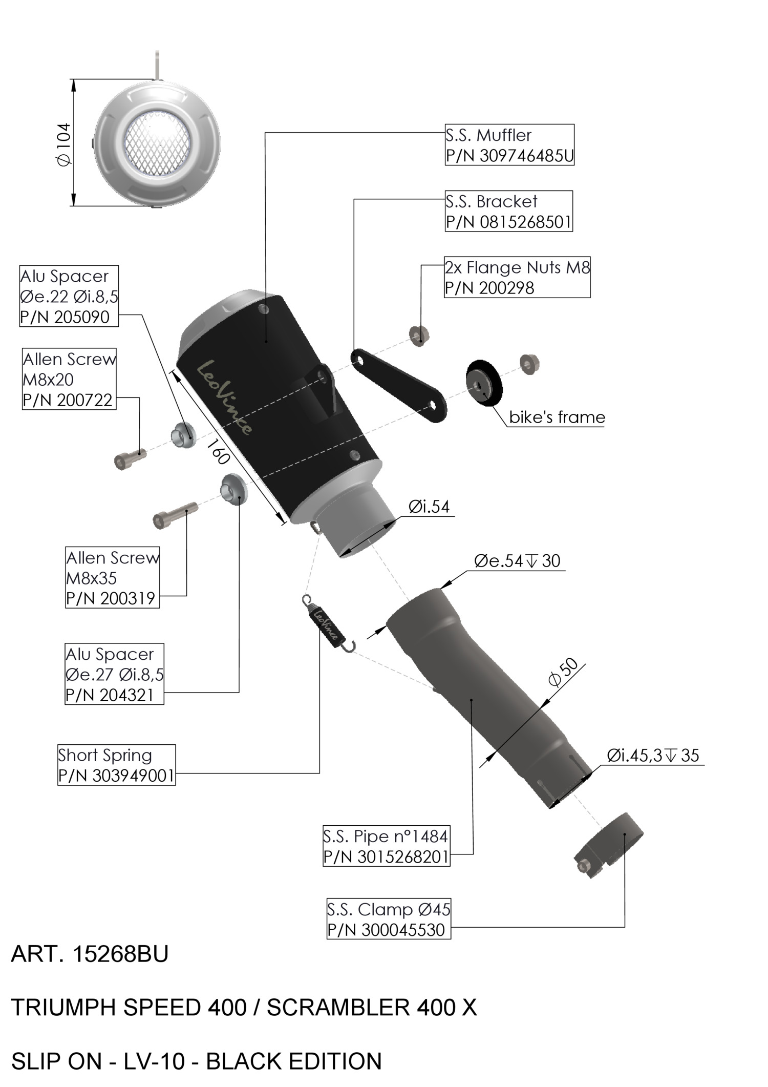 15268BU - Exhaust muffler LeoVince LV-10 BLACK TRIUMPH SPEED 400 (24-25)