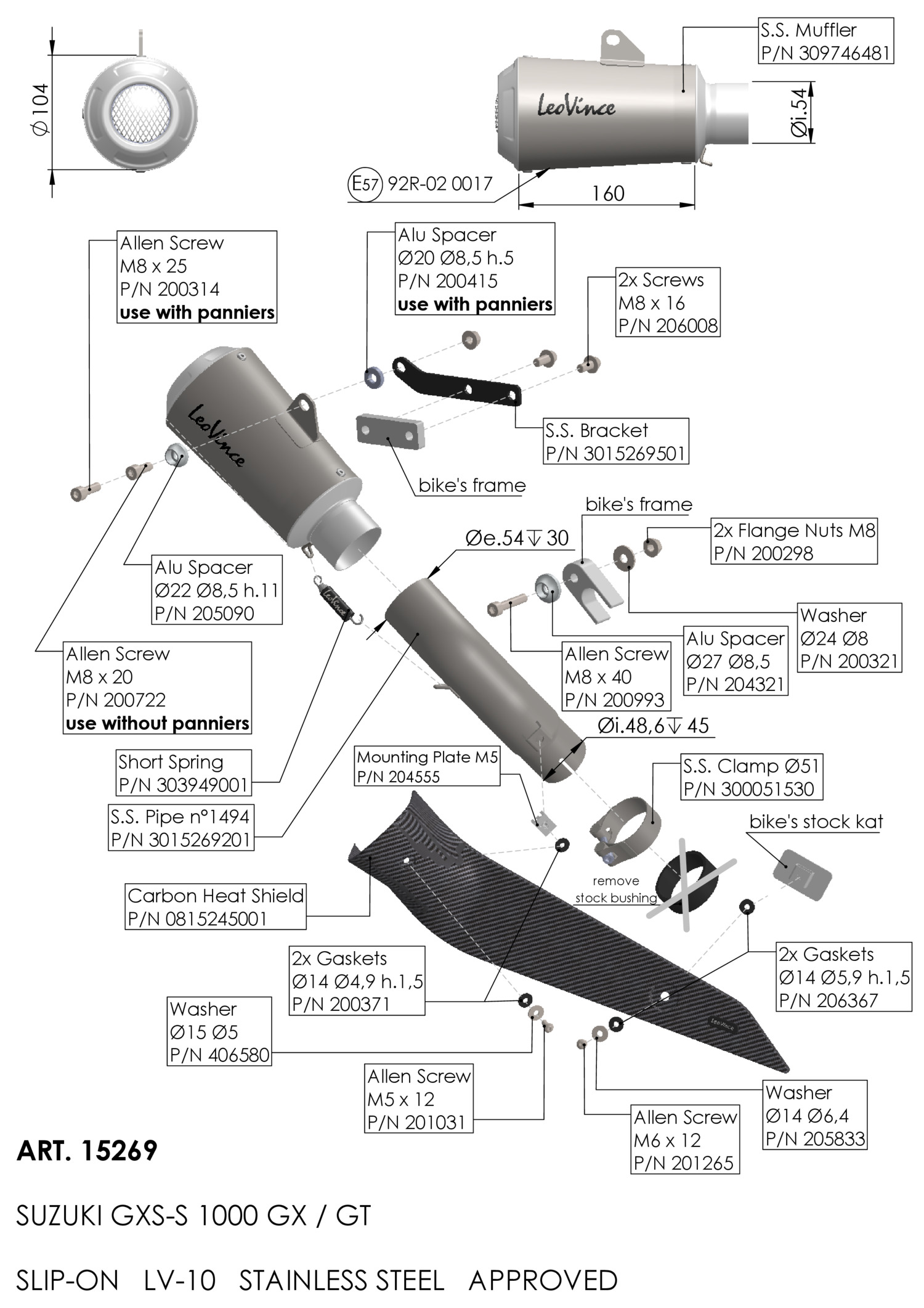 15269 - Exhaust muffler LeoVince LV-10 Inox SUZUKI GSX-S 1000 GT (21-24)