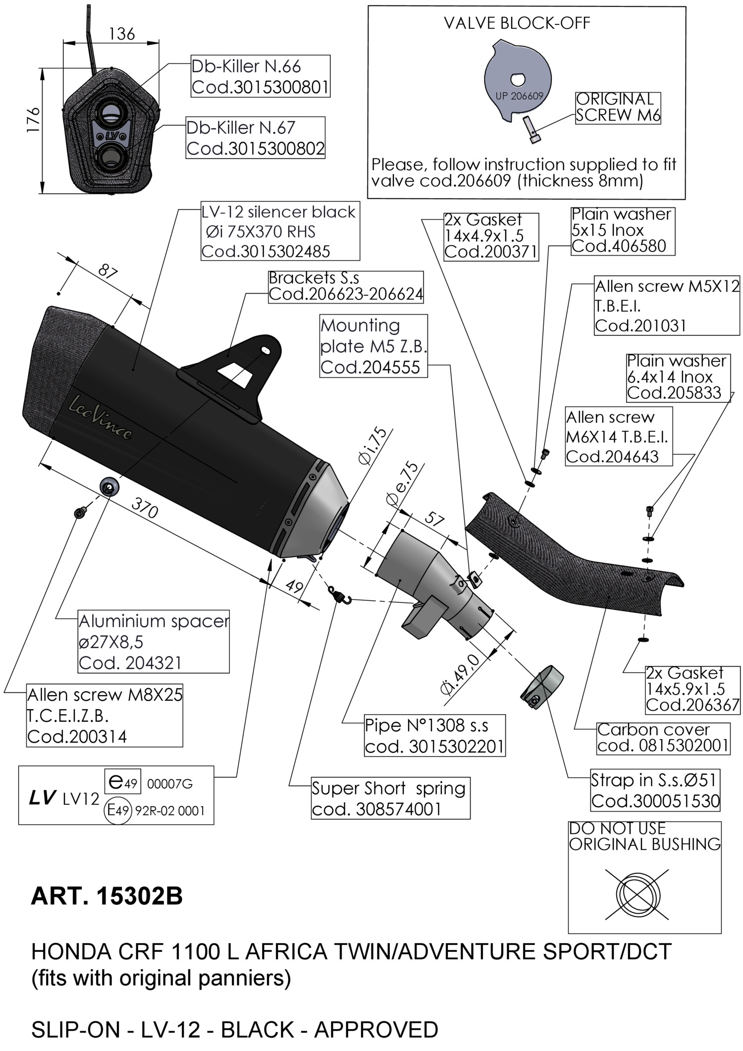 15302B - Exhaust muffler LeoVince LV-12 Black SS HONDA CRF 1100 L AFRICA TWIN