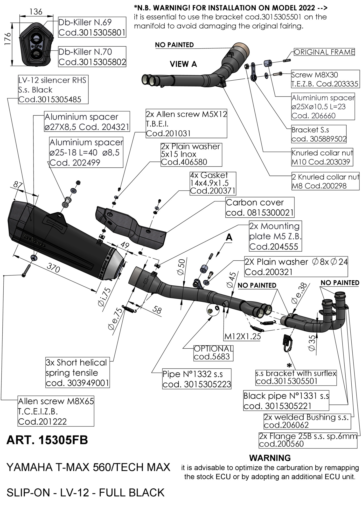 15305FB - Exhaust LeoVince LV-12 Black SS YAMAHA T-MAX 560/TECH MAX (20-24)