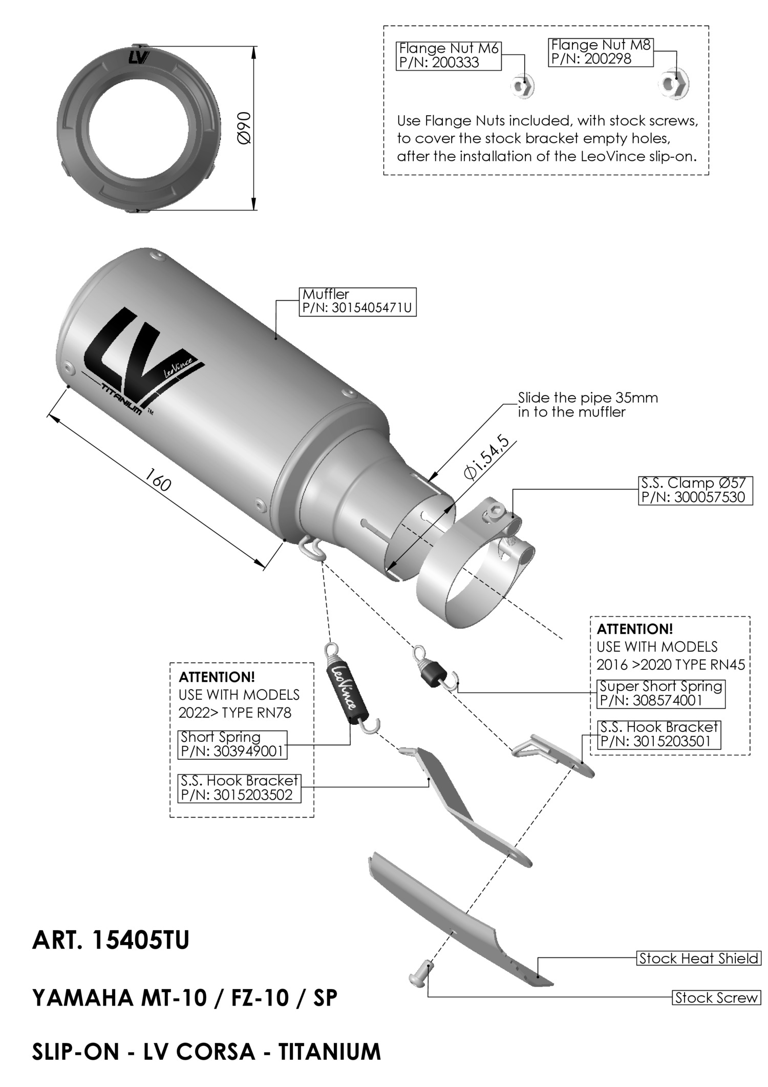 15405TU Exhaust muffler LeoVince LV CORSA TITANIUM YAMAHA MT-10/FZ-10/SP (16-20)