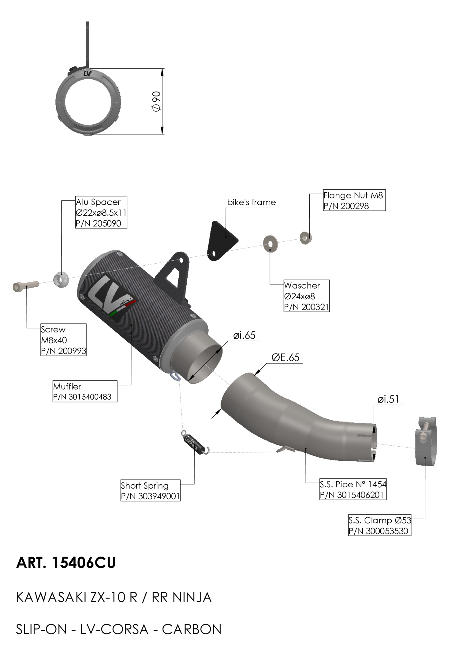 Exhaust muffler LeoVince LV CORSA CARBON FIBER Carbon KAWASAKI ZX-10R NINJA (16-20) | KAWASAKI ZX-10R NINJA (21-24) | KAWASAKI ZX-10RR NINJA (17-20) | KAWASAKI ZX-10RR NINJA (21-24)