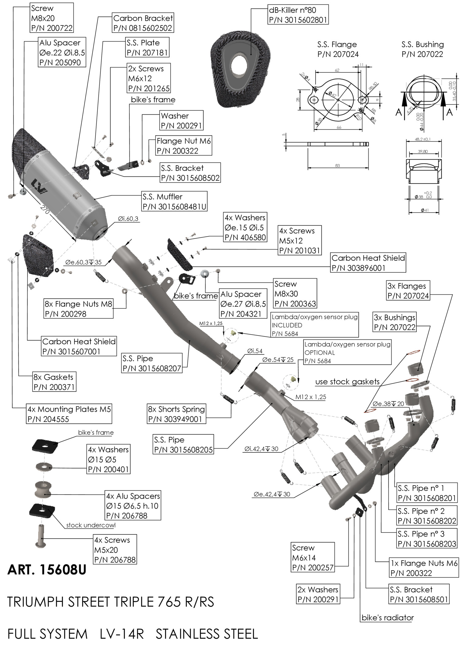 15608U - Exhaust LeoVince LV-14 R Inox TRIUMPH STREET TRIPLE 765 R/RS/A2 (23-24)