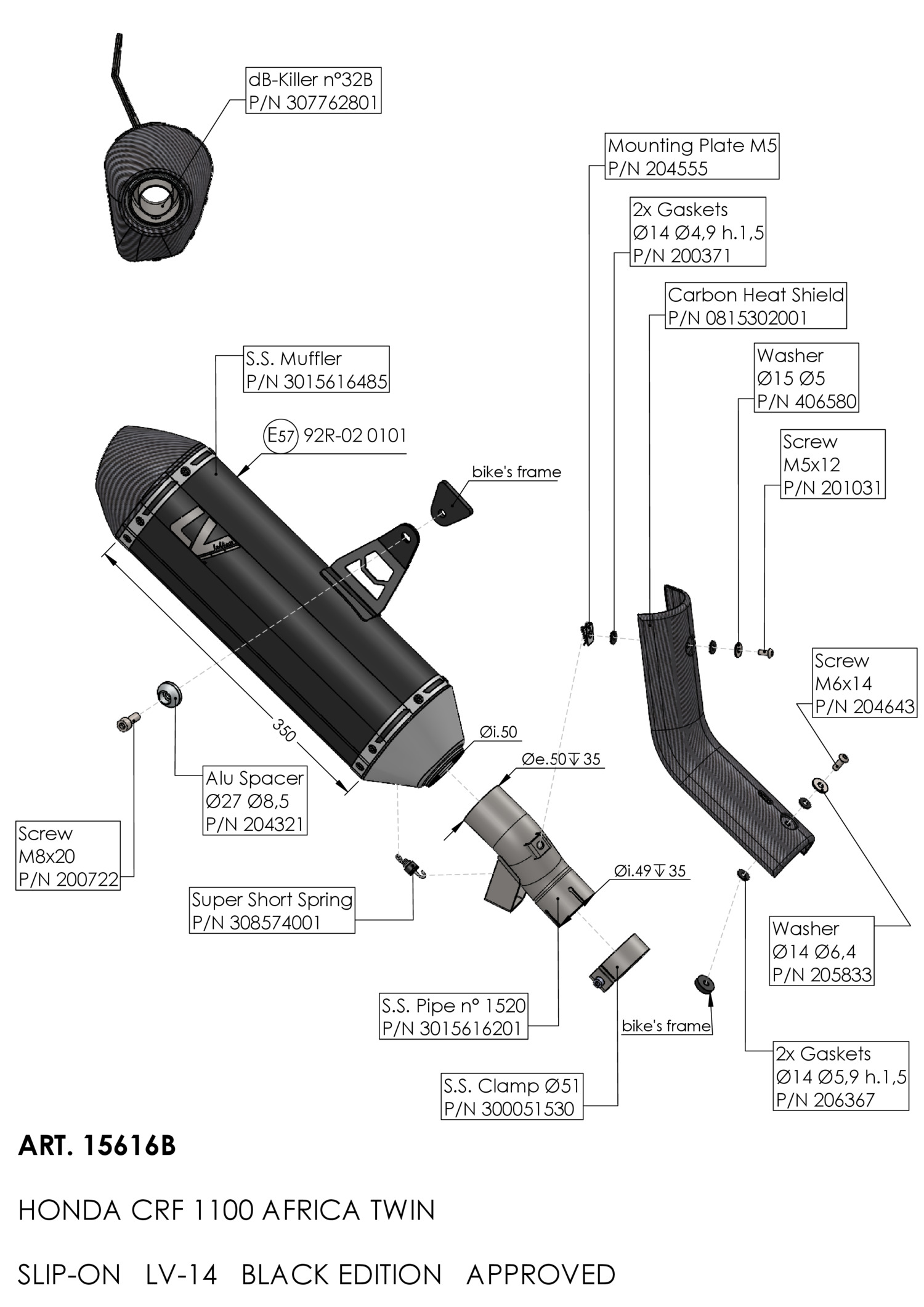 15616B Exhaust muffler LeoVince LV-14 BLACK HONDA CRF 1100 L AFRICA TWIN (24-25)