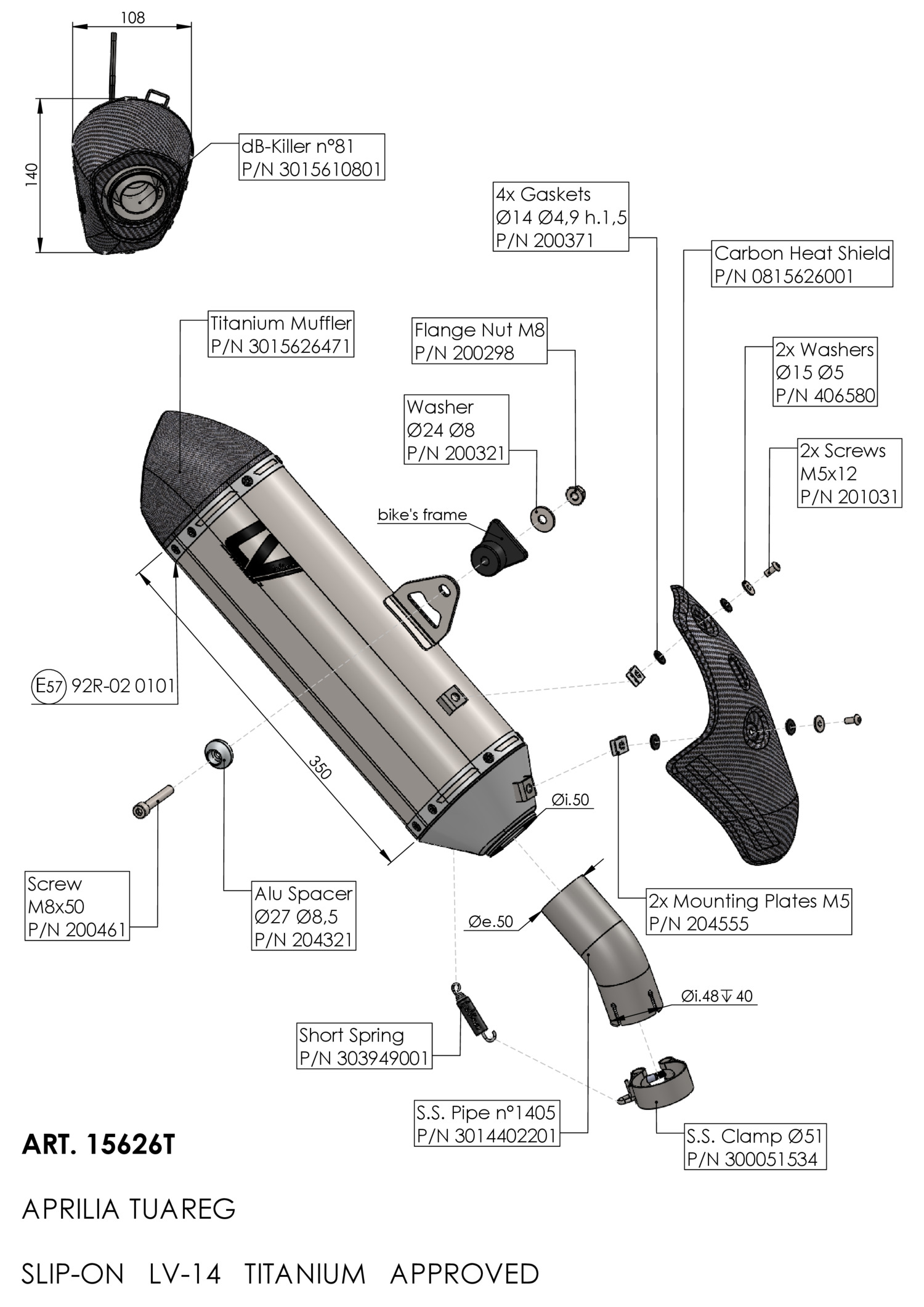 15626T - Exhaust muffler LeoVince LV-14 TITANIUM APRILIA TUAREG 660 (22-24)