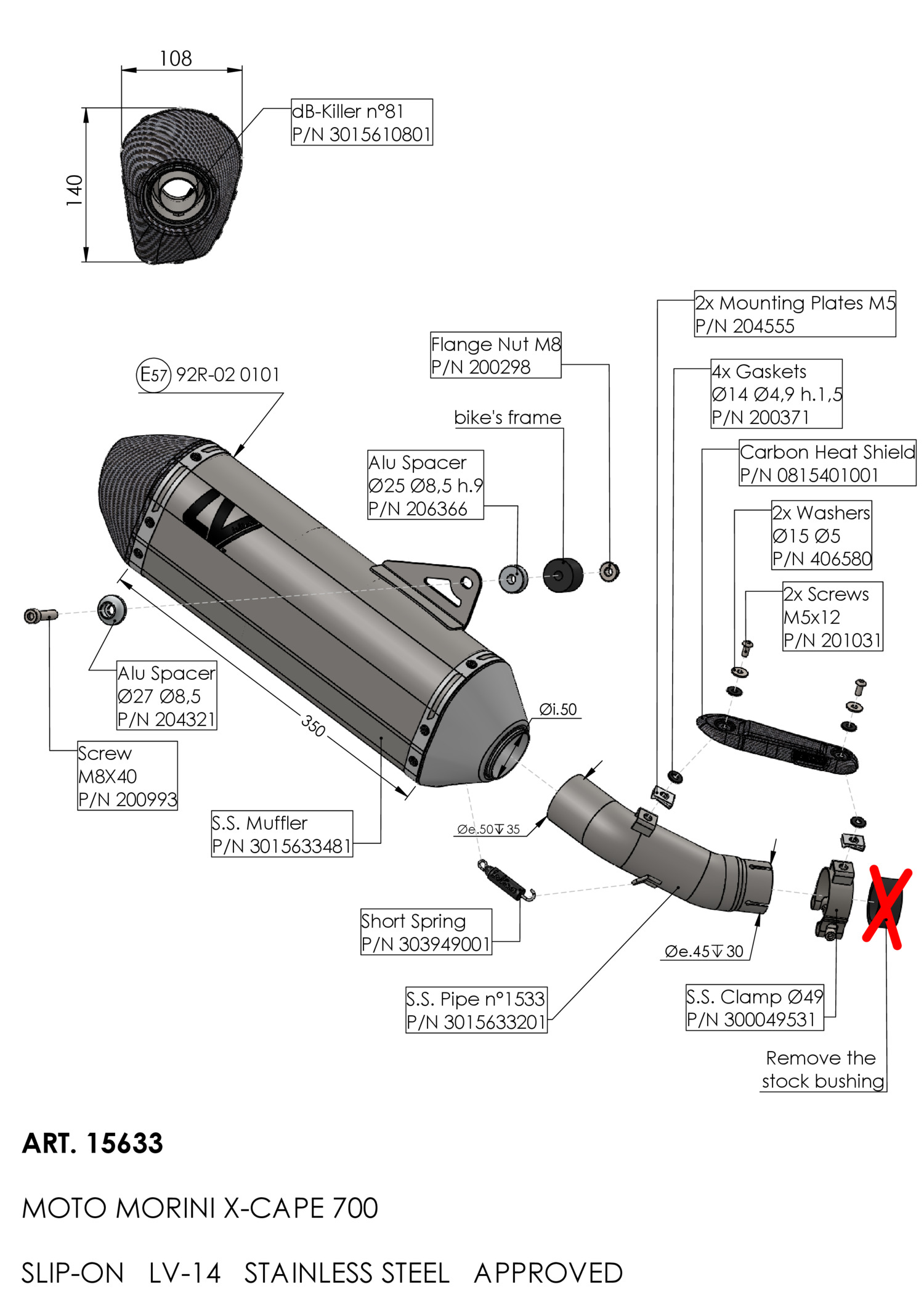 15633 - Exhaust muffler LeoVince LV-14 Inox MOTO MORINI X-CAPE 700 2025