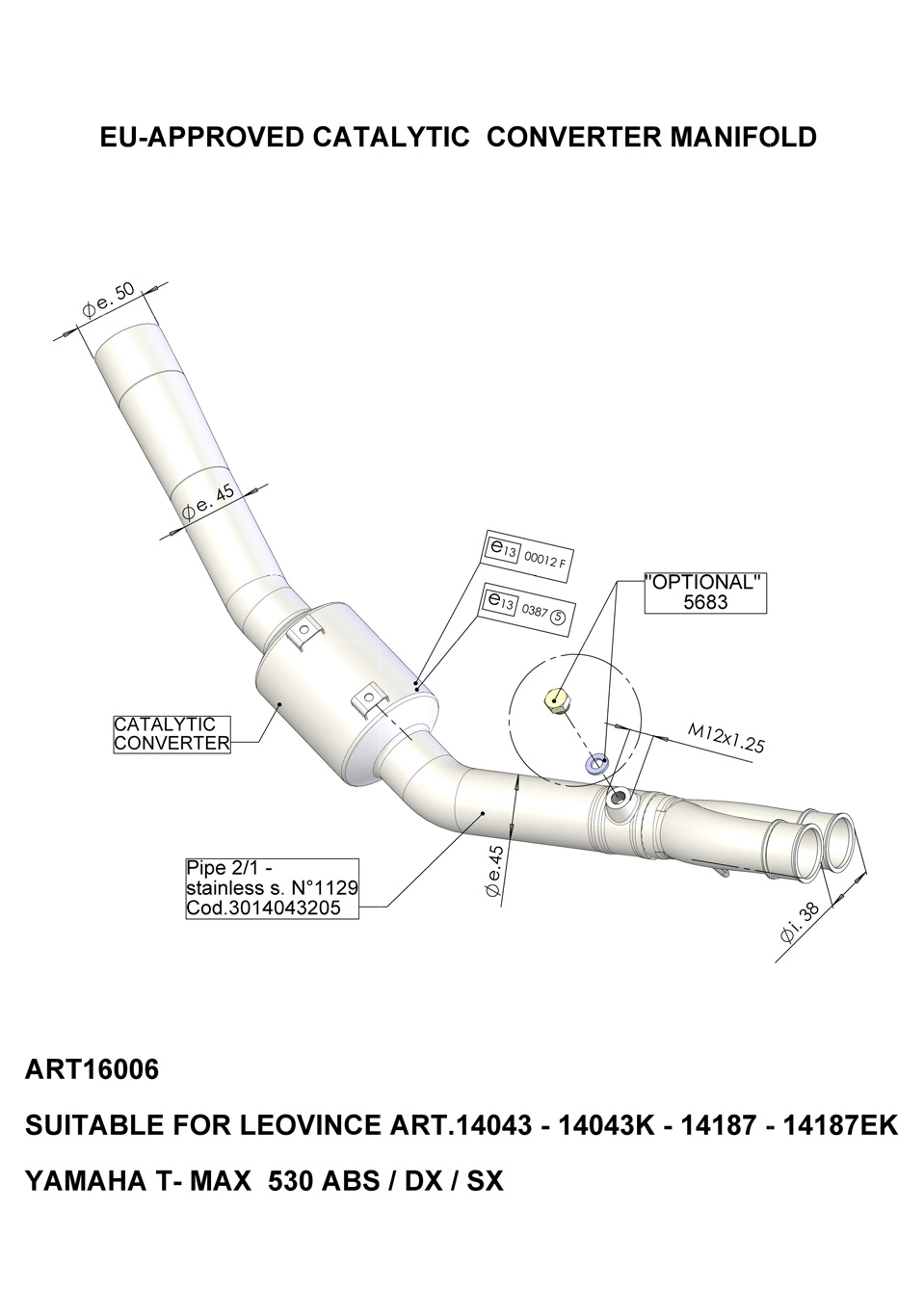 16006 - Exhaust Manifold LeoVince Catalytic Yamaha T-MAX 530 ABS/DX/SX (01-18)