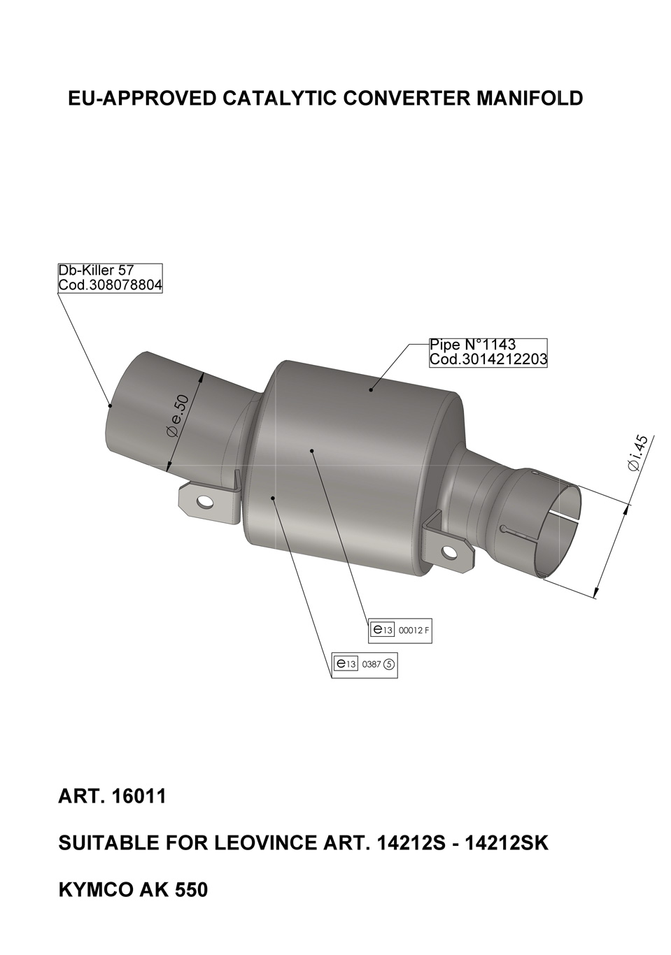 16011 - Exhaust Manifold LeoVince Catalytic Kymco AK 550 (17-18)