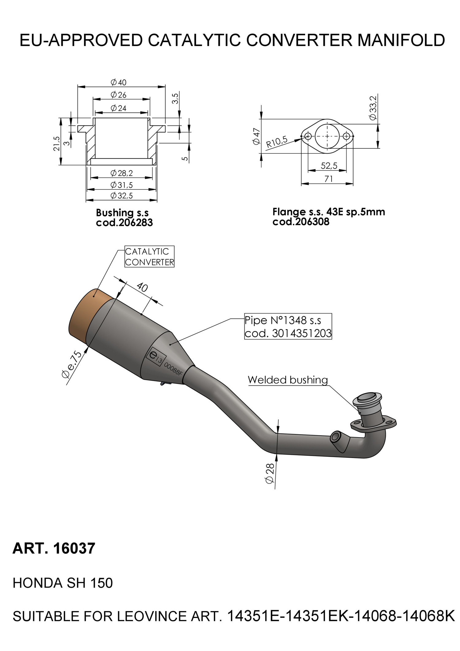 16037 - Exhaust manifold LeoVince Catalysed HONDA SH 150 (20-23)