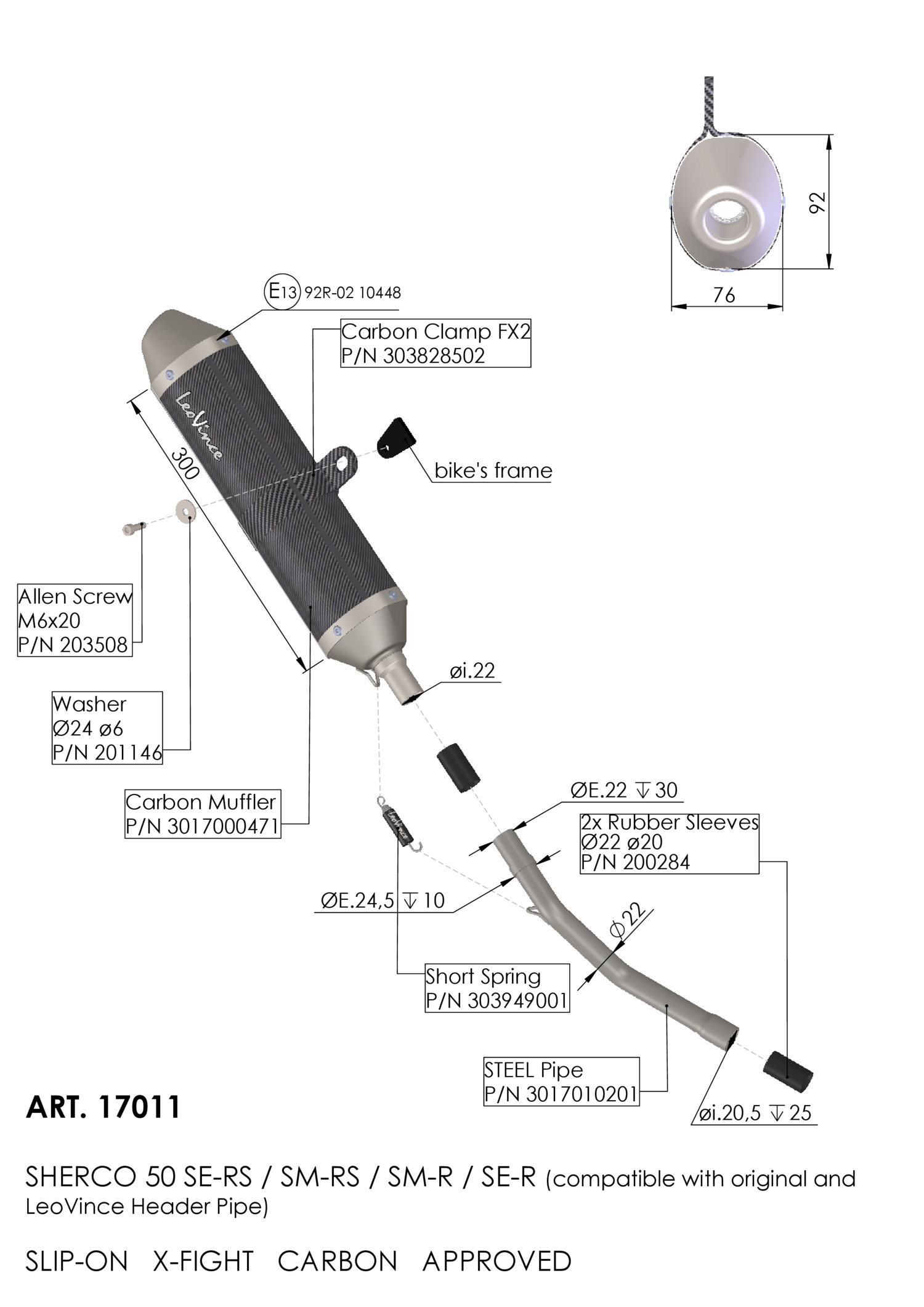 17010 - Exhaust muffler LeoVince X-FIGHT SHERCO 50 (21-24)Special Price $135.85 Regular Price $159.82 -15% -