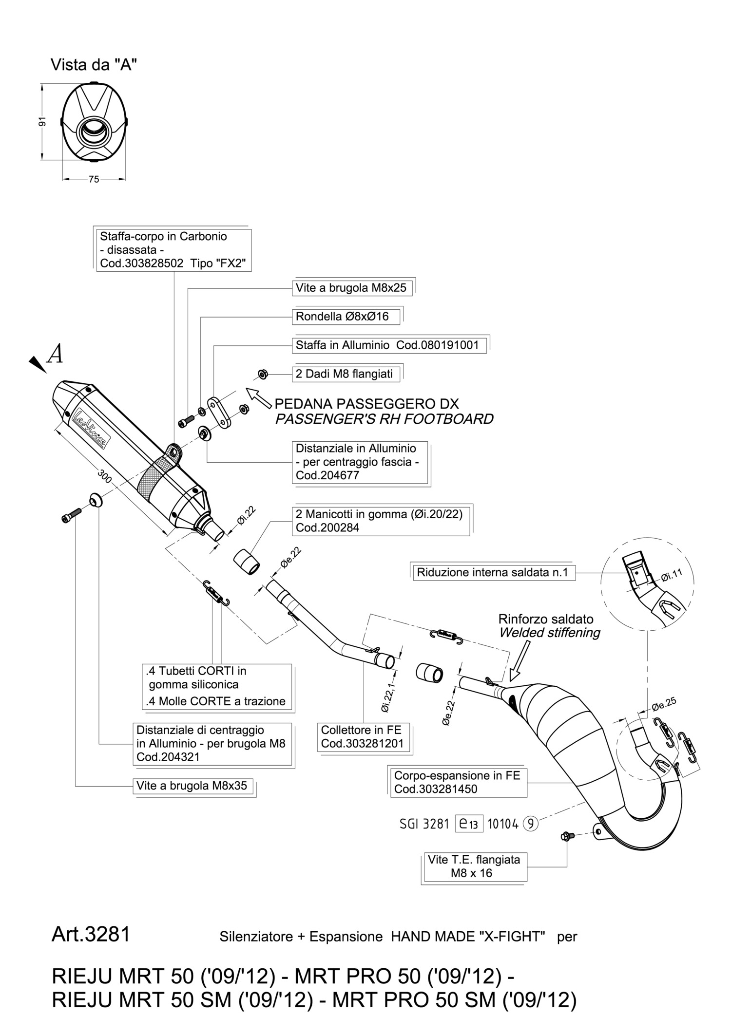 3281 - Exhaust LeoVince X-FIGHT Stainless steel RIEJU MRT 50/PRO/SM (09-12)