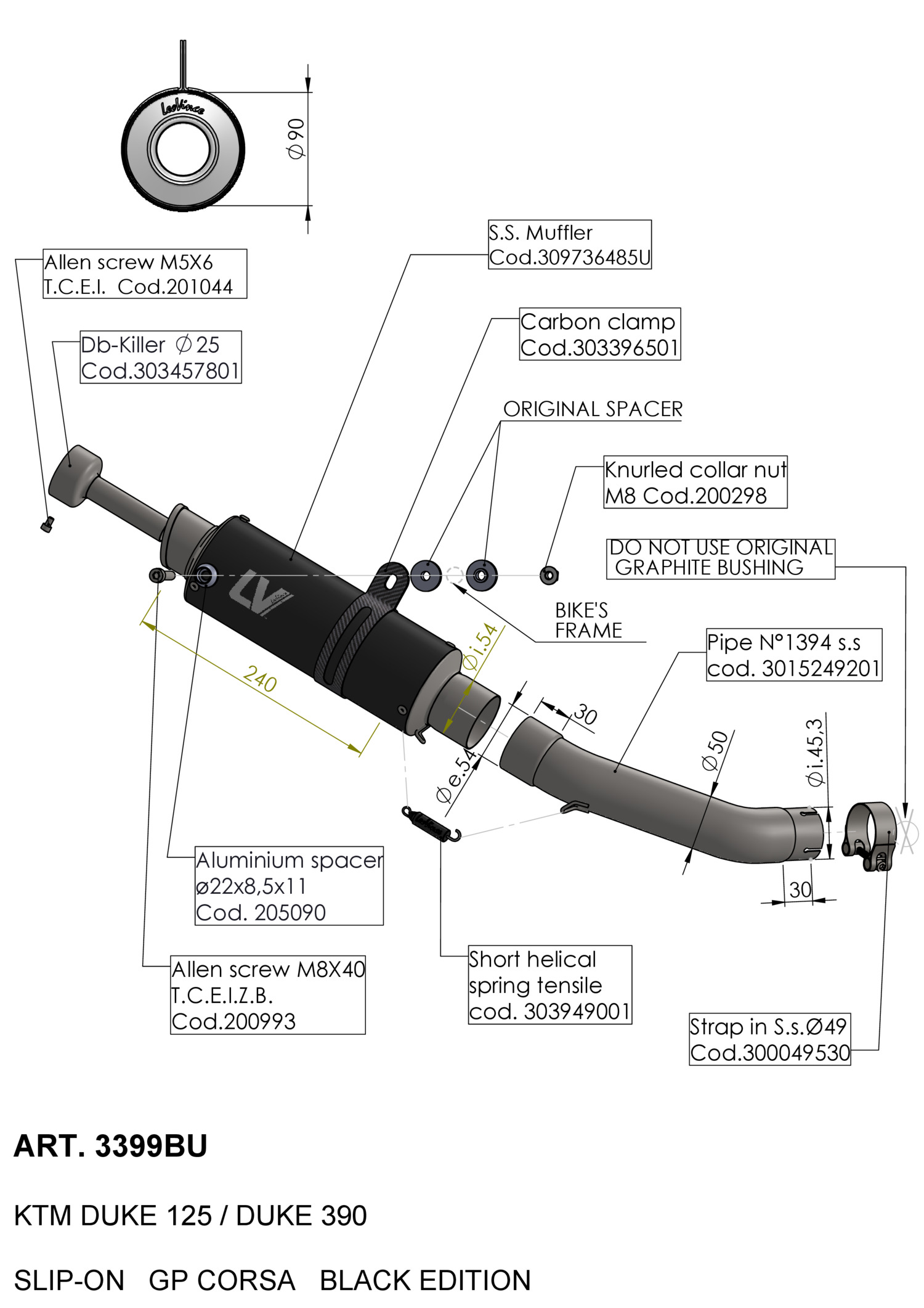 3399BU - Exhaust muffler LeoVince GP CORSA BLACK KTM DUKE 125 (21-23)