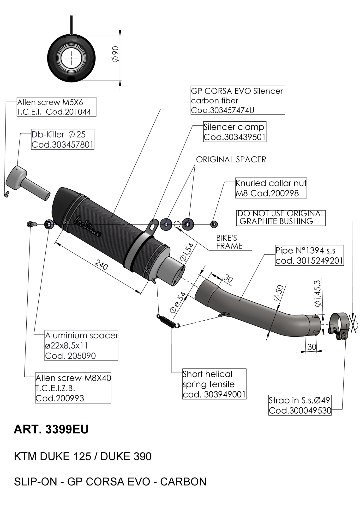 3399EU - Exhaust muffler LeoVince GP CORSA EVO Carbon KTM DUKE 125 (21-23)