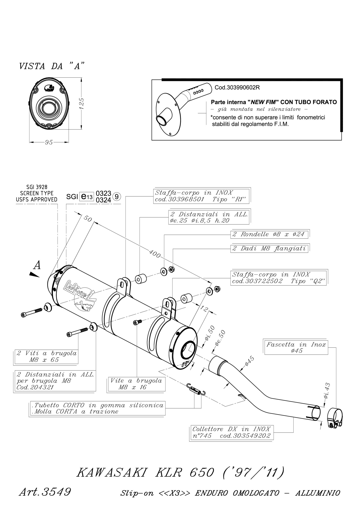 3549 - Exhaust muffler LeoVince X3 Aluminum KAWASAKI KLR 650 (97-22)