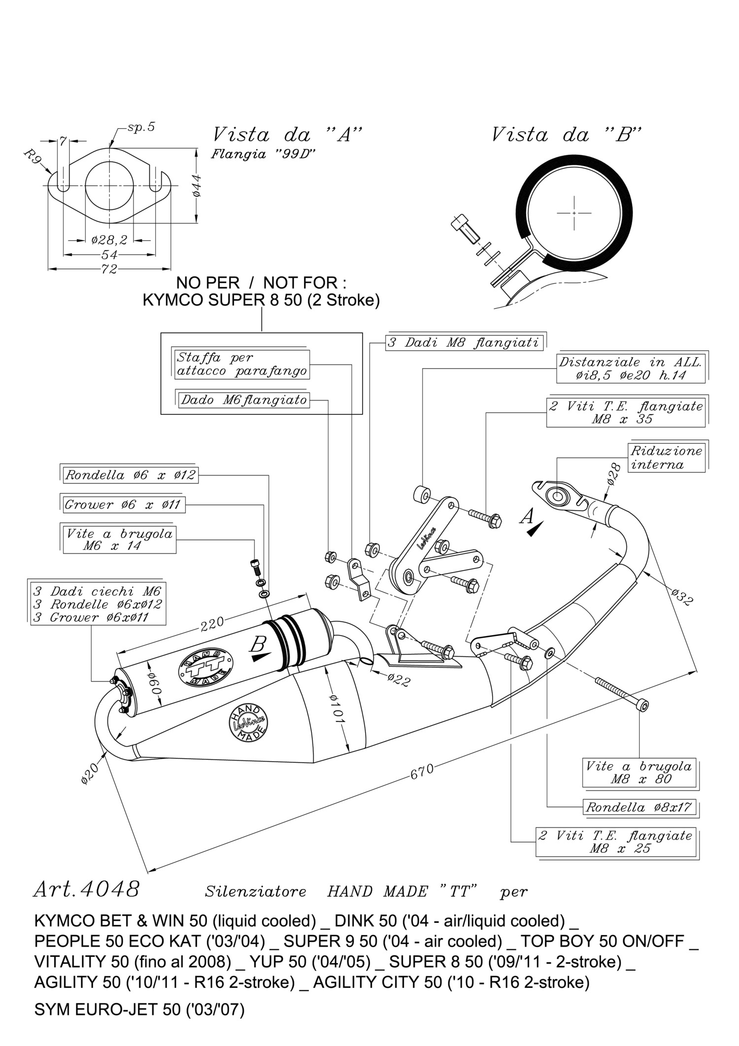 Full exhaust system LeoVince HAND MADE TT Aluminum KYMCO AGILITY 50 RT 16" 2 stroke (10-12) | KYMCO BET & WIN 50 liquid cooled (01-07) | KYMCO TOP BOY 50 ON/OFF (96-06) | KYMCO PEOPLE 50 ECO KAT (03-04) | KYMCO SUPER 8 50 2 stroke (09-12) | KYMCO SUPER 9 50 air cooled 2004 | KYMCO VITALITY 50 (07-08) | KYMCO YUP 50 (04-05)