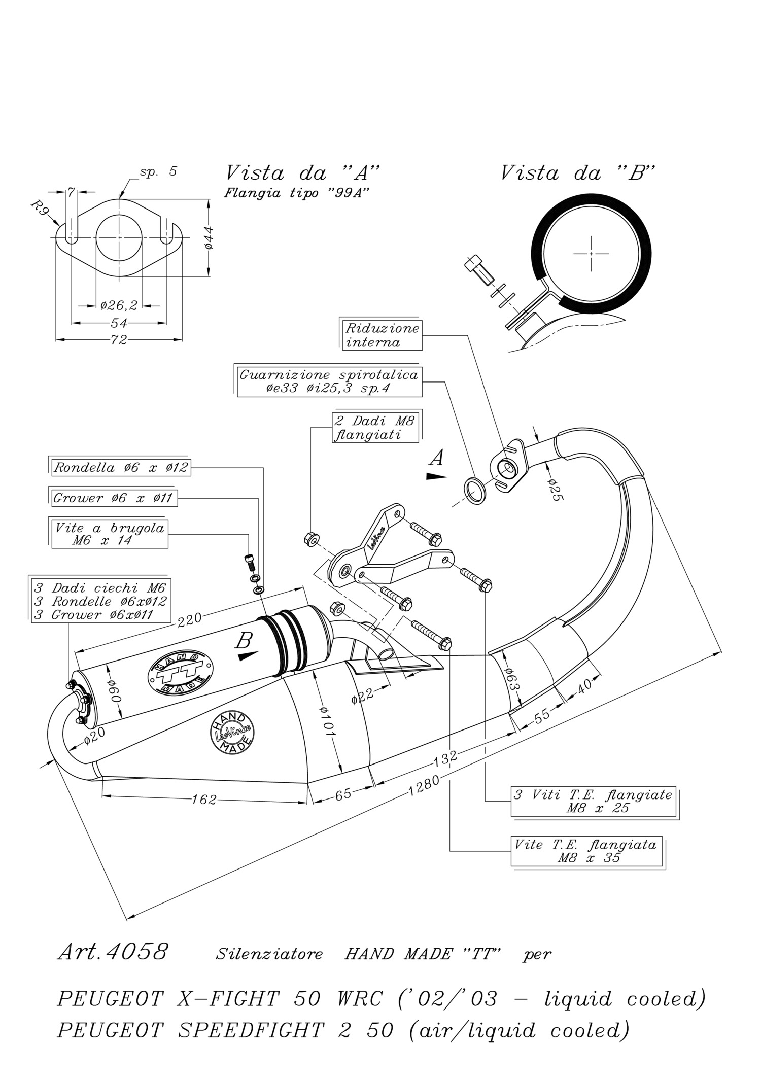 4058 - Exhaust LeoVince HAND MADE TT PEUGEOT SPEEDFIGHT 2 50 air/liquid cooled