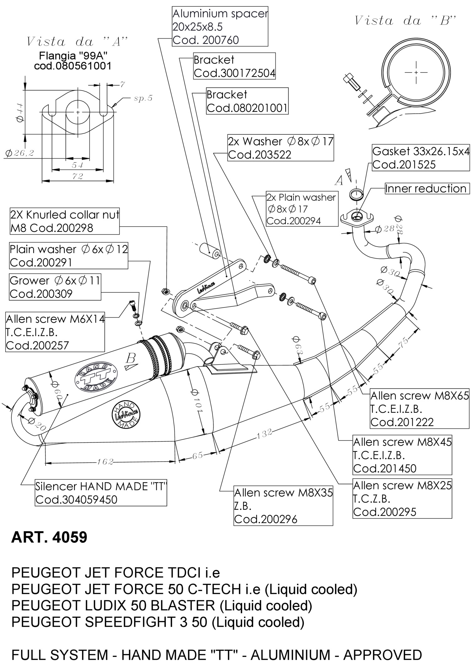 4059 - Exhaust LeoVince HAND MADE TT Aluminum PEUGEOT JET FORCE 50 TDSI (03-06)