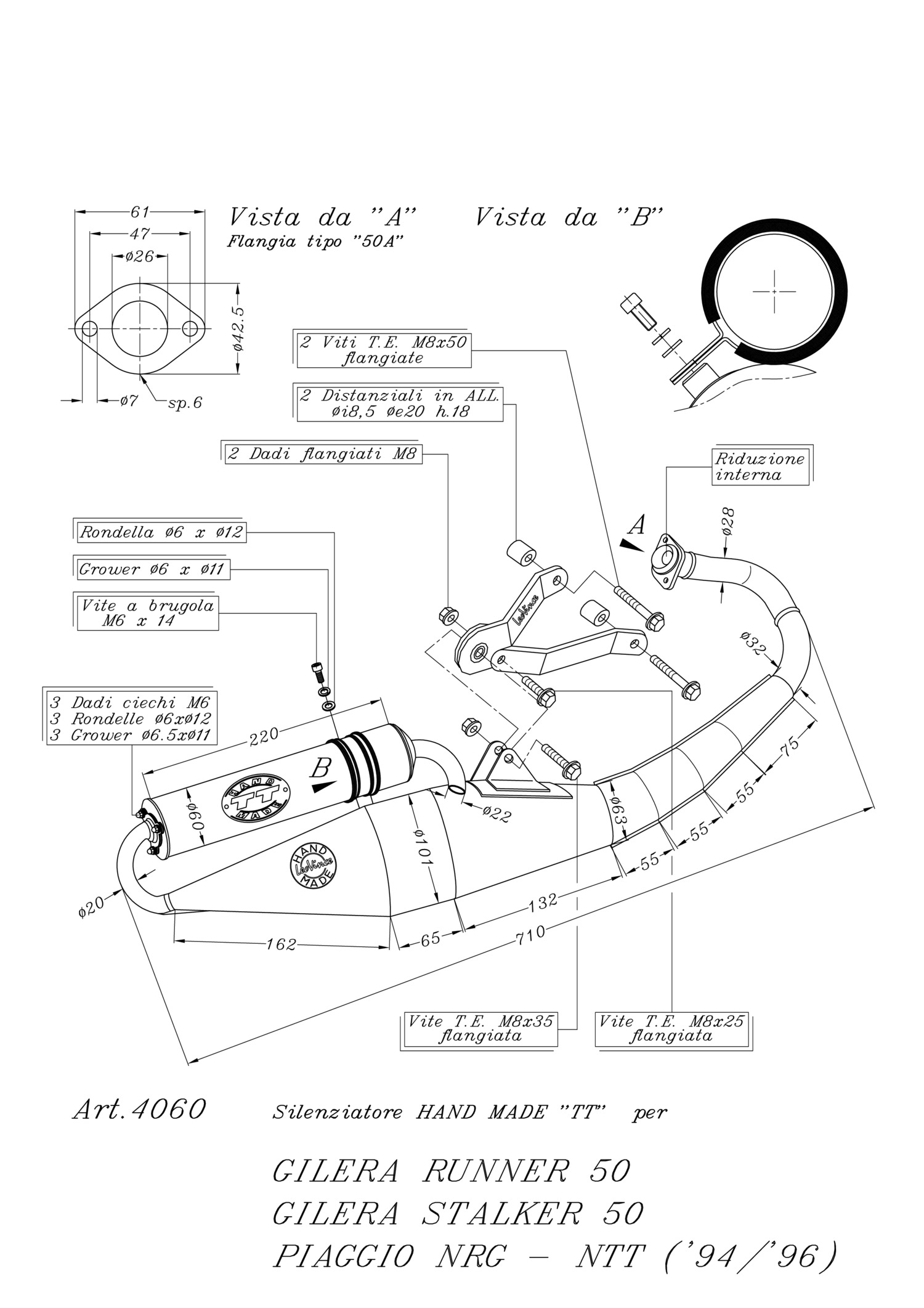 4060 - Full exhaust system LeoVince HAND MADE TT Aluminum GILERA RUNNER 50