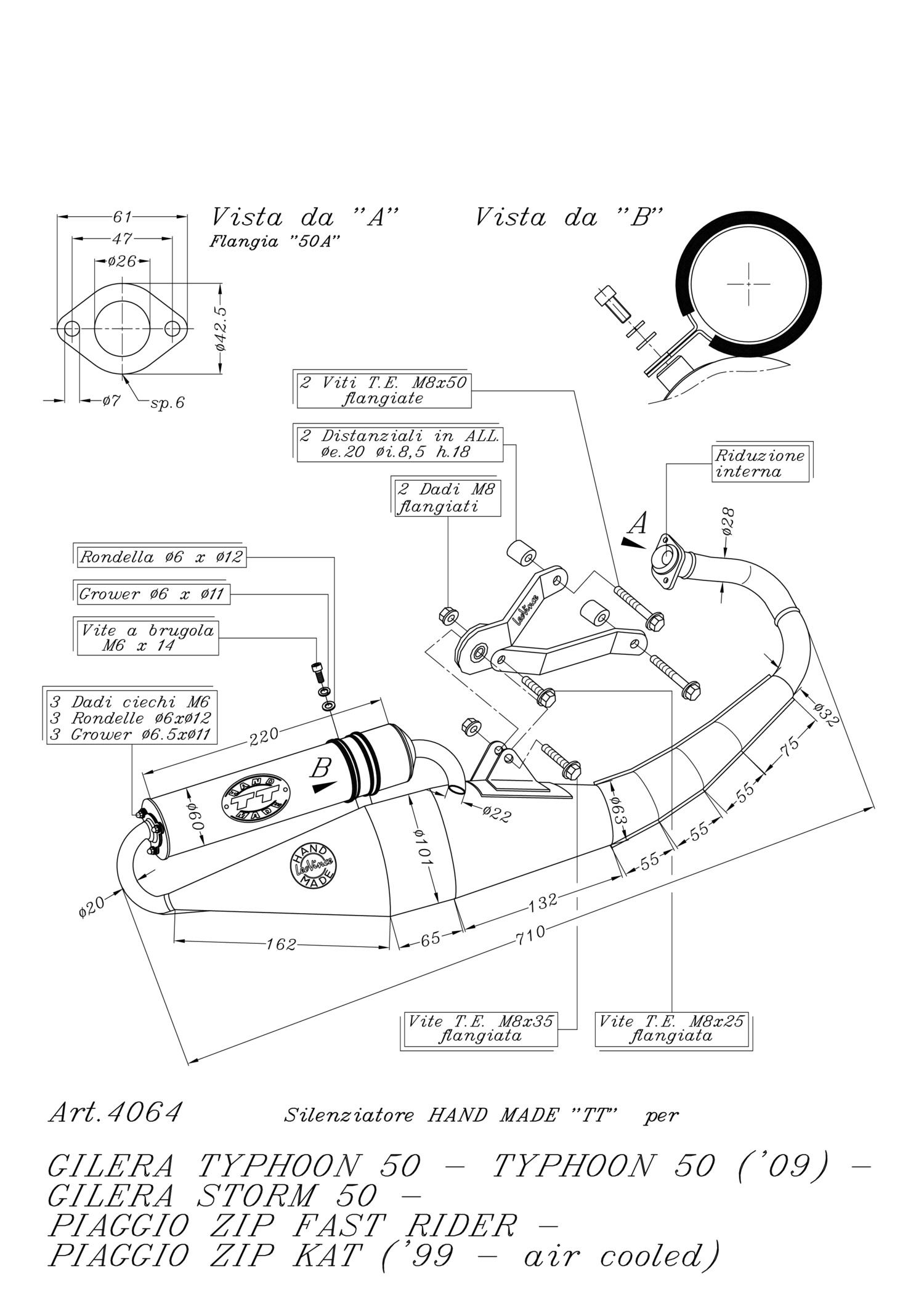 Full exhaust system LeoVince HAND MADE TT Aluminum PIAGGIO ZIP FAST RIDER | PIAGGIO ZIP KAT air cooled 1999 > | PIAGGIO TYPHOON 50 2 stroke (02-08) | PIAGGIO TYPHOON 50 2 stroke (09-11)