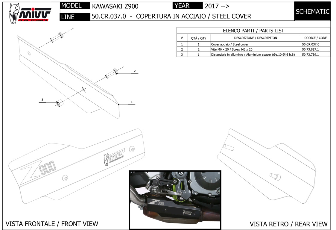 50.CR.037.0 - Heat Shield Scarico Mivv SPORT - KAWASAKI Z900 (17-)