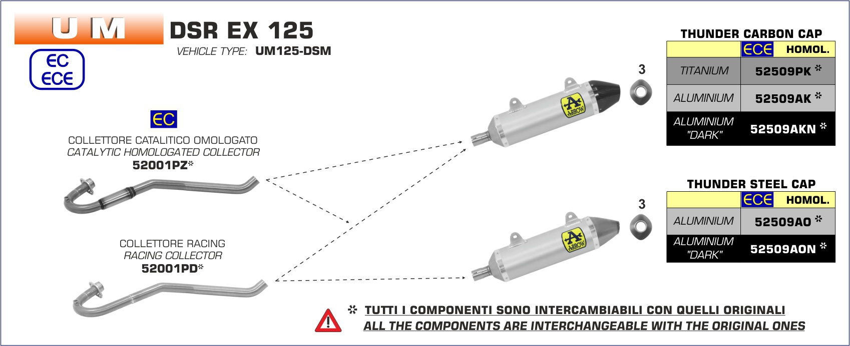 52509AO - Exhaust Muffler Arrow Thunder Aluminum UM DSR EX 125 (18-19)Special Price $268.69 Regular Price $327.67 -18% -