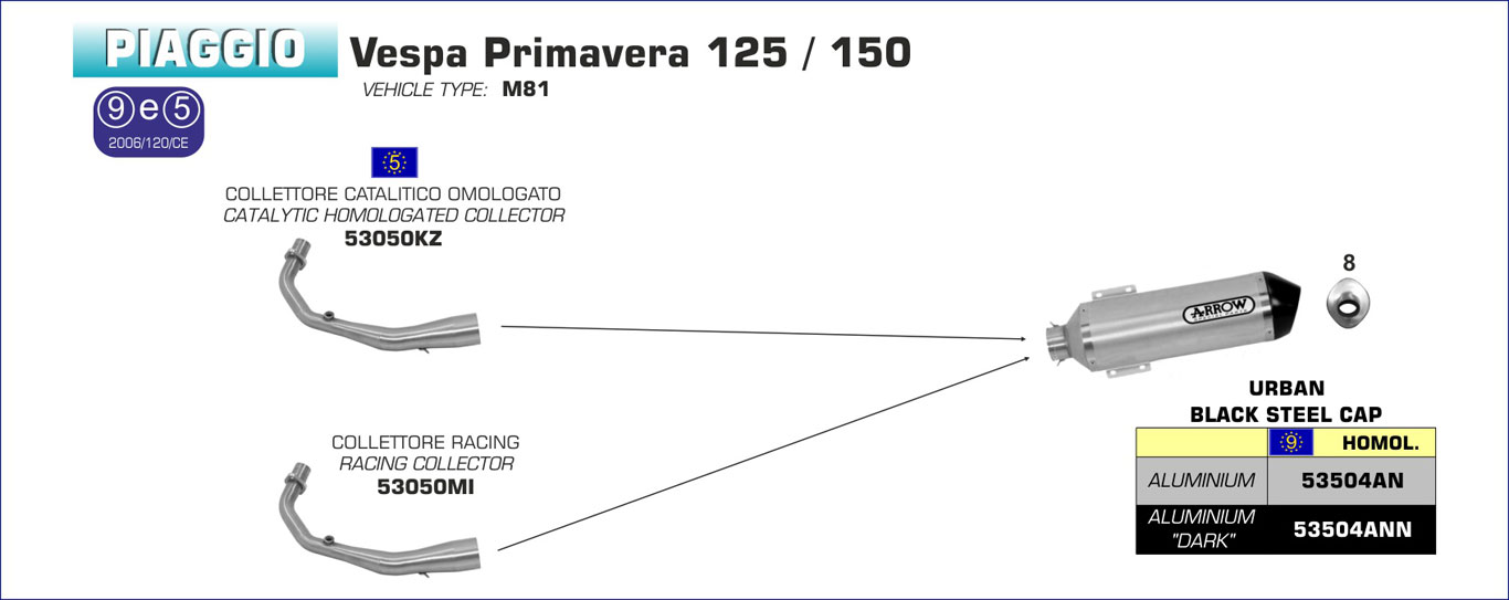 53050KZ - Exhaust Manifold Arrow Catalytic Piaggio VESPA Primavera 125/150