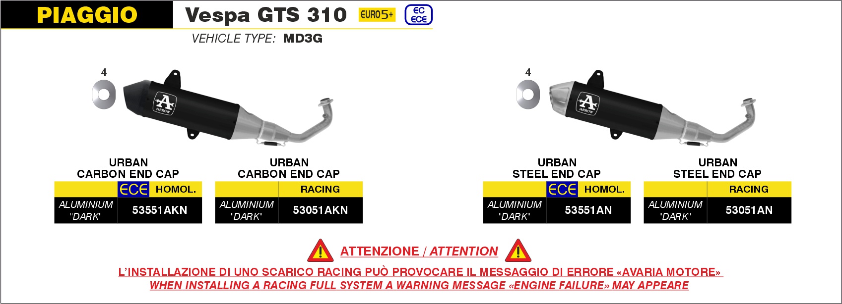 53051AKN - Full Exhaust Arrow Urban Dark Aluminium Piaggio VESPA GTS 310 (25-)