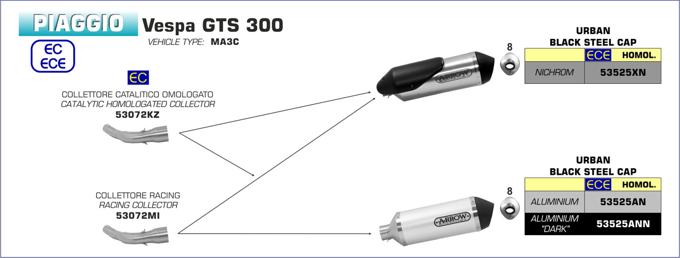 53525ANN - Exhaust Muffler Arrow Urban Aluminum Dark VESPA GTS 300 (17-18)