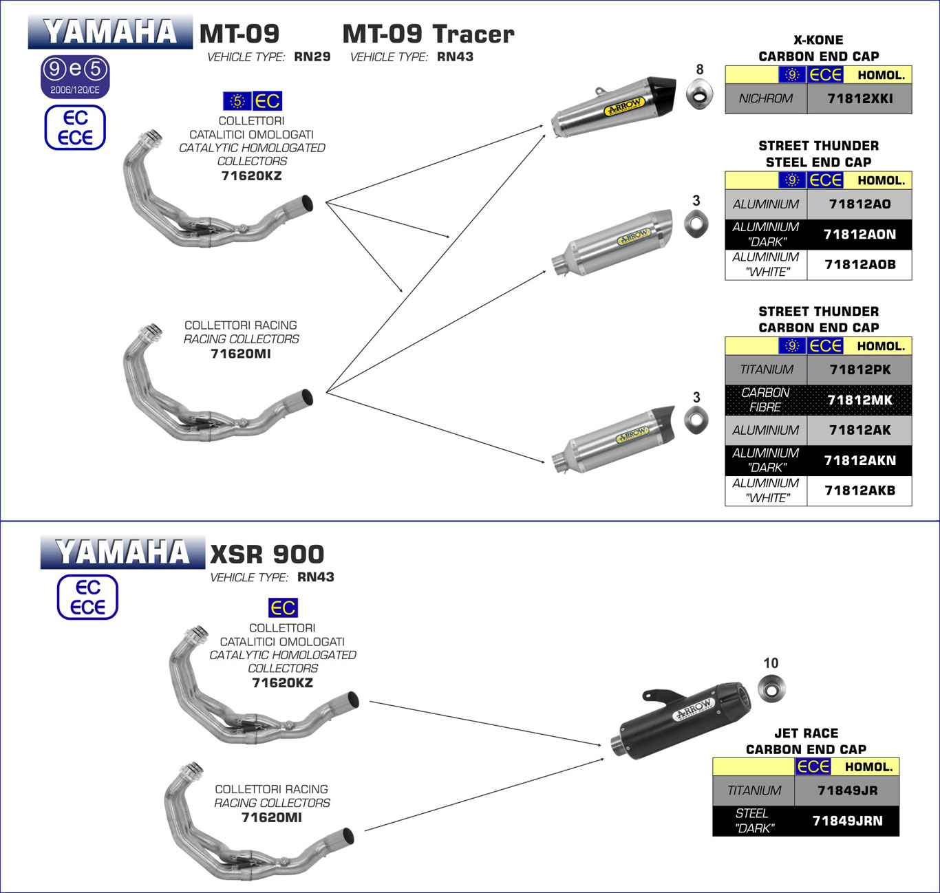 71620KZ - Exhaust Manifold Arrow Catalytic Yamaha MT-09 / Tracer / XSR 900