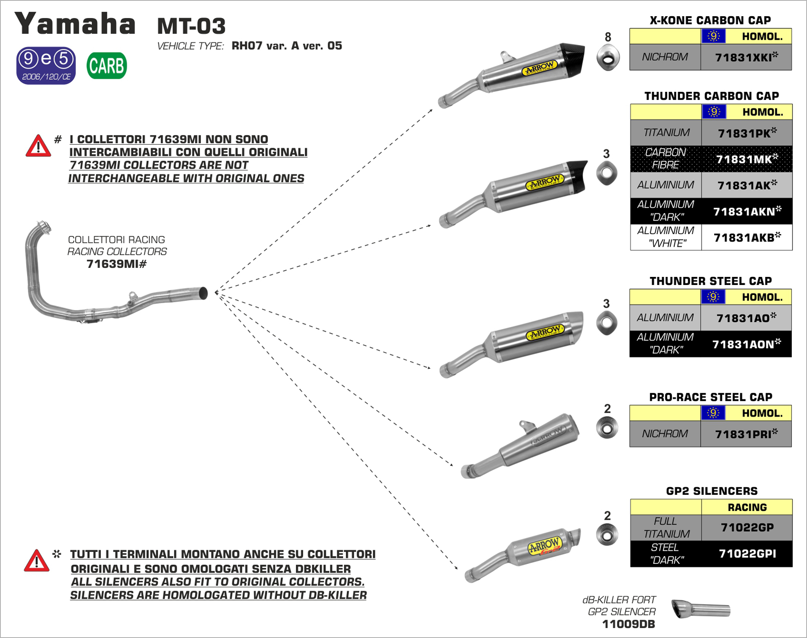 71639MI - Exhaust Manifold Arrow Racing Yamaha MT-03 (16-19) / YZF R3 (19)