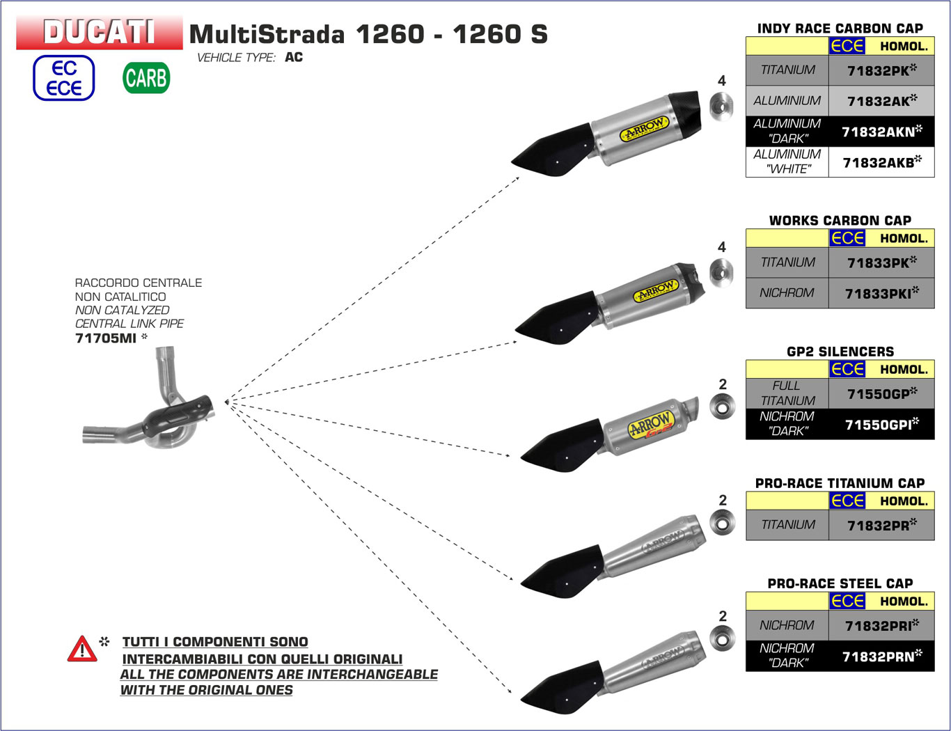 71705MI - Exhaust Mid Pipe Arrow No-kat Ducati Multistrada 1260 / S (18-19)