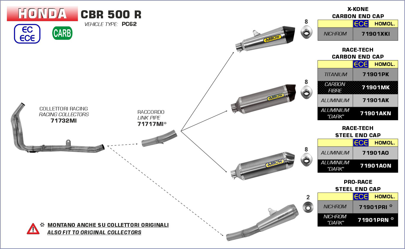 71732MI - Exhaust Manifold Arrow Racing Stainless Steel Honda CBR 500 R (19-20)