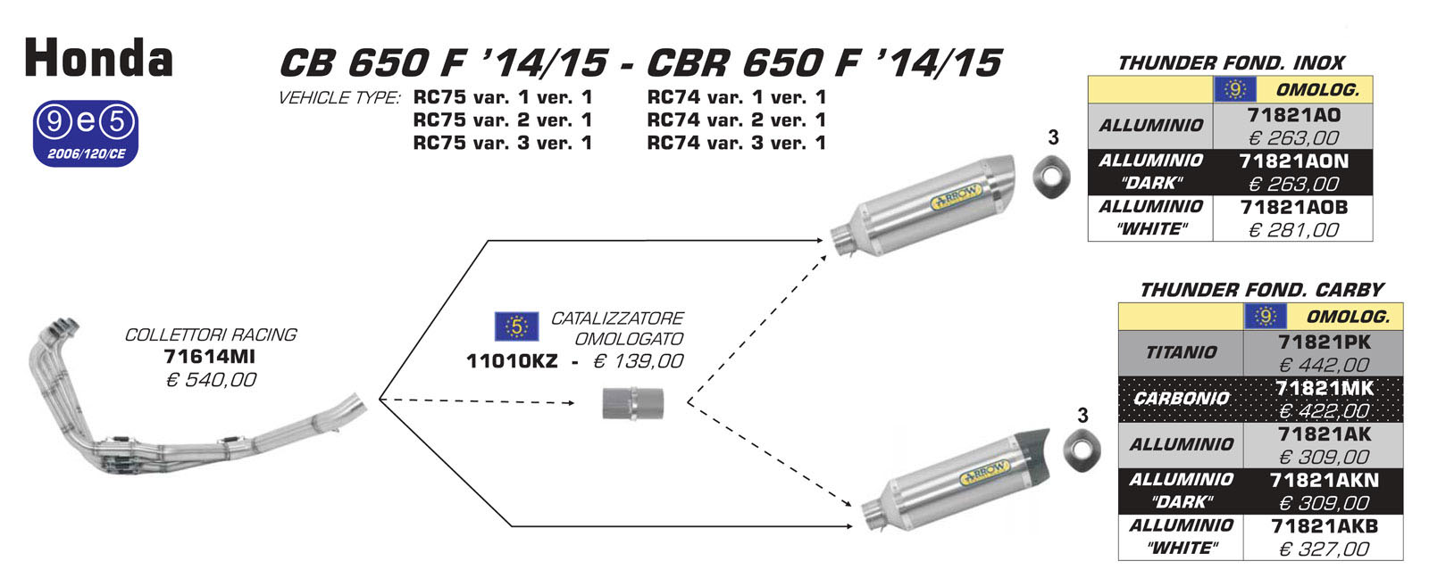 71821MK - Exhaust Muffler Arrow Thunder Carbonio Honda CBR 650 F '14