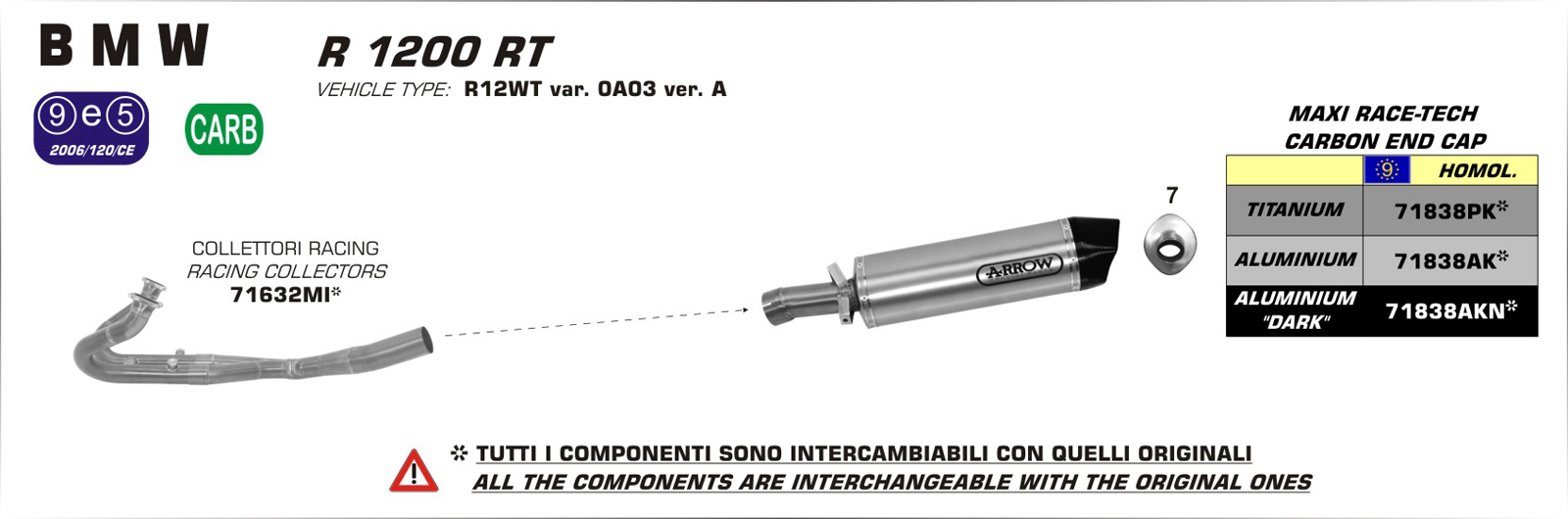 Exhaust Muffler Arrow Maxi Race-Tech Dark Carbon End Cap BMW R 1200 RT 2014/2016