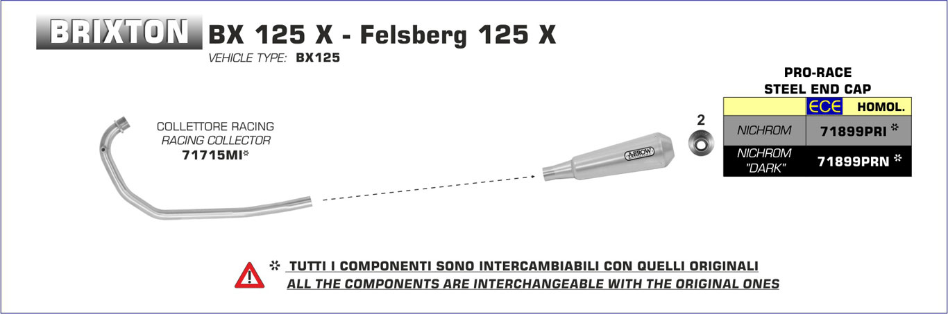 71899PRI - Exhaust Muffler Arrow Pro-Race Nichrom Brixton BX / Felsberg 125 XSpecial Price €271.42 Regular Price €331.00 -18%