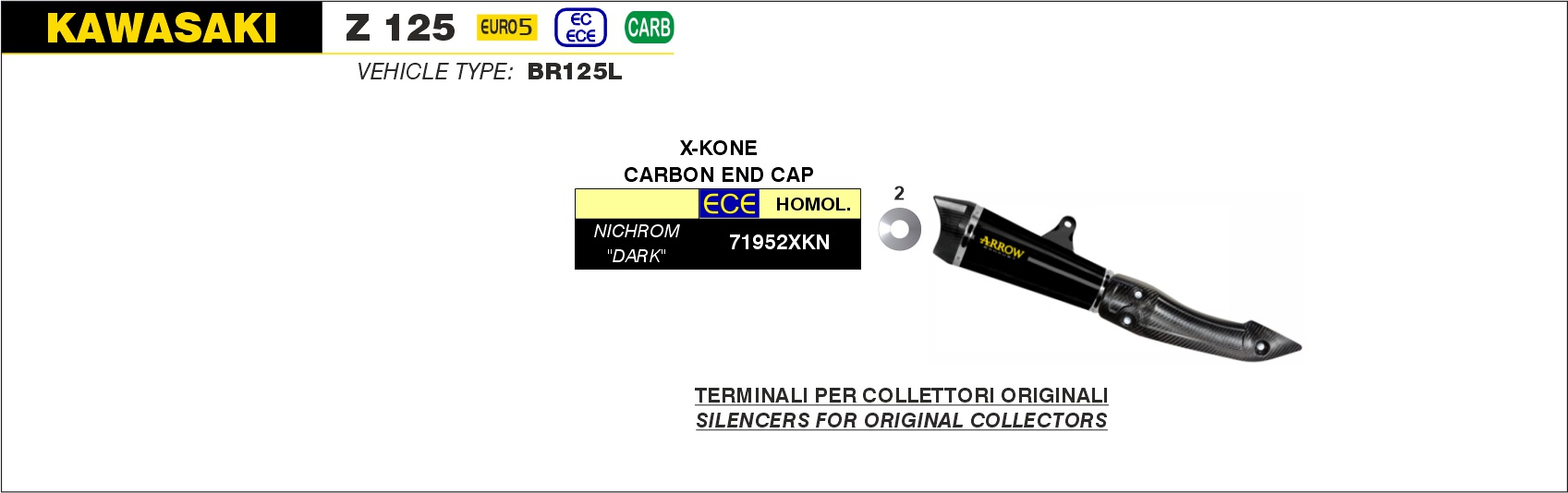 Exhaust Muffler Arrow X-Kone Dark Stainless Steel Carbon End Cap Kawasaki Z 125 (21-23)